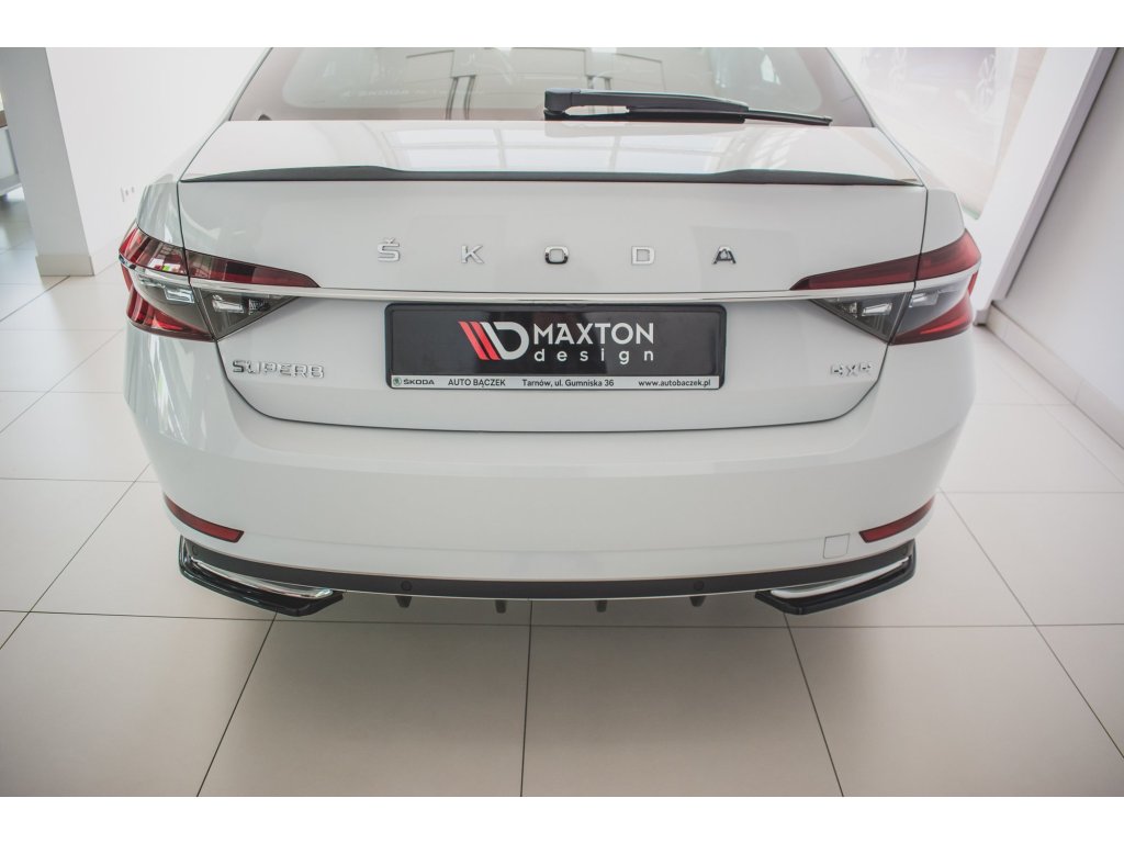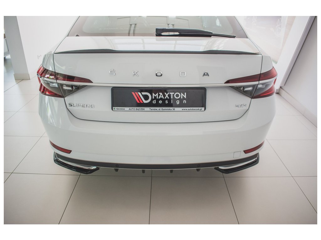 Maxton Design boční difuzory pod zadní nárazník pro vozidlo Škoda Superb Mk3 FL . Povrchová úprava spoileru černý lesklý plast ABS.