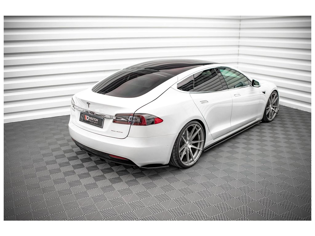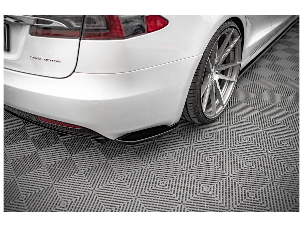 Maxton Design boční difuzory pod zadní nárazník pro vozidlo Tesla Model S . Povrchová úprava spoileru černý lesklý plast ABS.