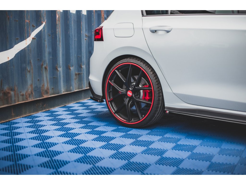 Maxton Design boční difuzory pod zadní nárazník pro vozidlo Volkswagen Golf GTI Mk8 . Povrchová úprava spoileru carbon-Look.