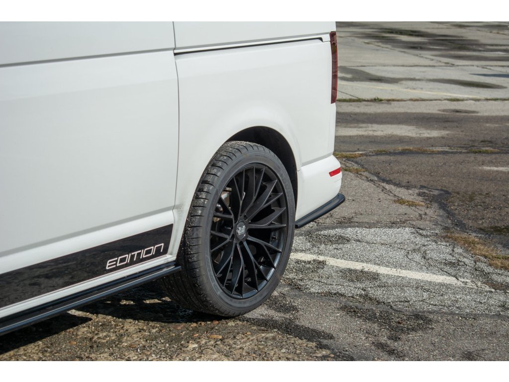 Maxton Design boční difuzory pod zadní nárazník pro vozidlo Volkswagen T6 . Povrchová úprava spoileru černý lesklý plast ABS.