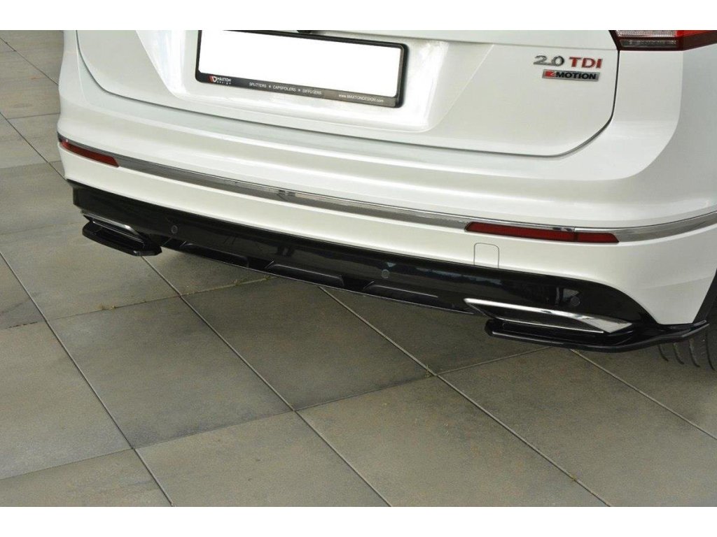 Maxton Design boční difuzory pod zadní nárazník pro vozidlo Volkswagen Tiguan Mk2 R-Line . Povrchová úprava spoileru carbon-Look.