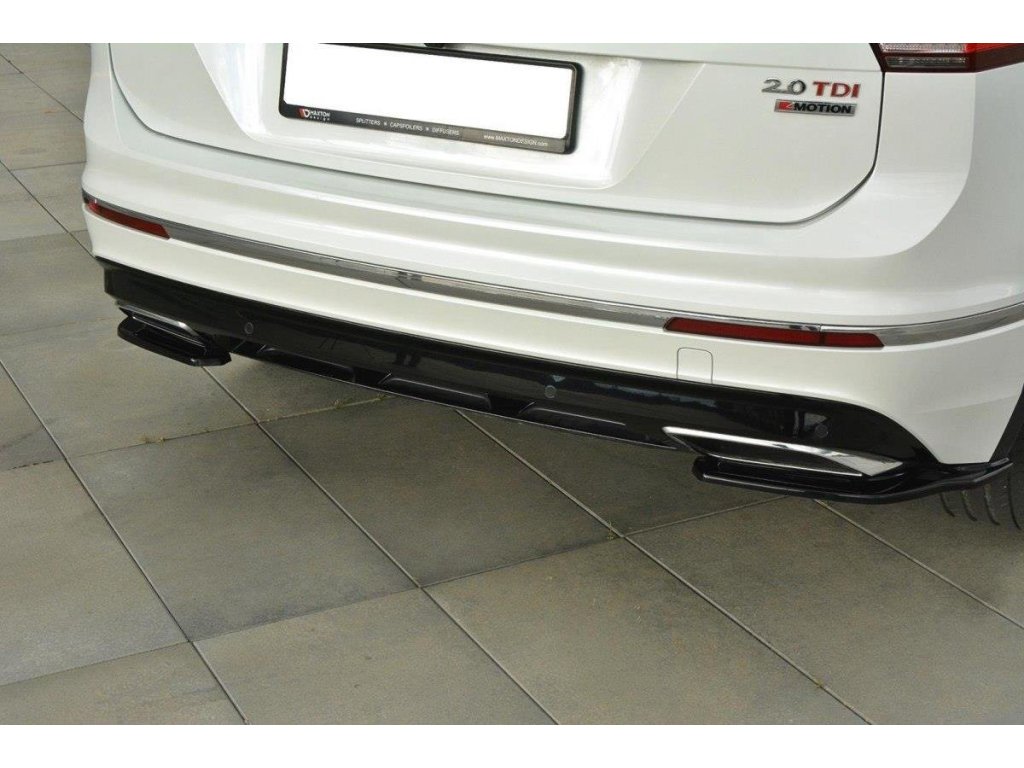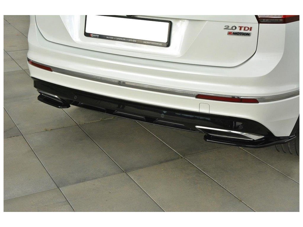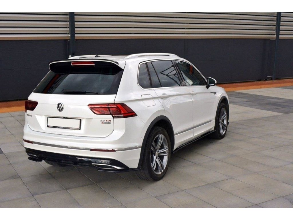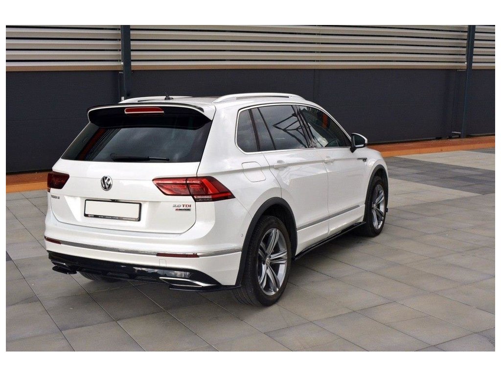 Maxton Design boční difuzory pod zadní nárazník pro vozidlo Volkswagen Tiguan Mk2 R-Line . Povrchová úprava spoileru černý lesklý plast ABS.