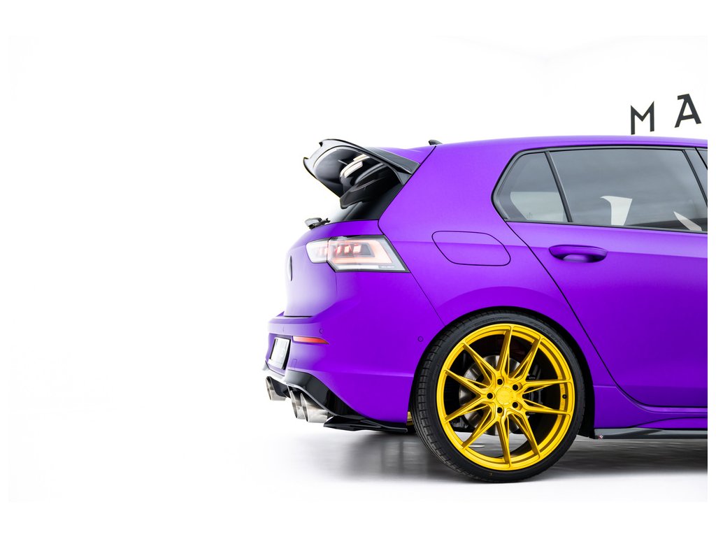 Maxton Design boční difuzory pod zadní nárazník v.8 pro vozidlo Volkswagen Golf R Mk8, Mk8 Facelift . Povrchová úprava spoileru černý lesklý plast ABS.