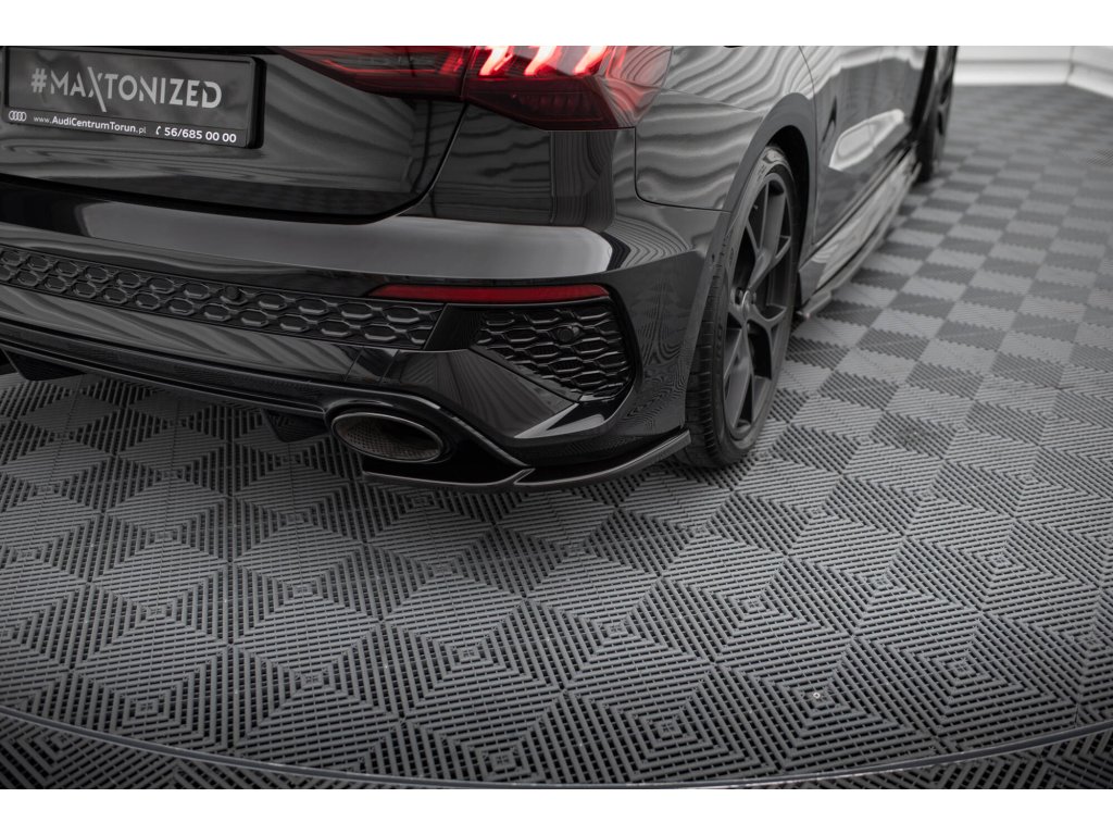 Maxton Design boční difuzory pod zadní nárazník ver.1 pro vozidlo Audi RS3 8Y . Povrchová úprava spoileru černý lesklý plast ABS.