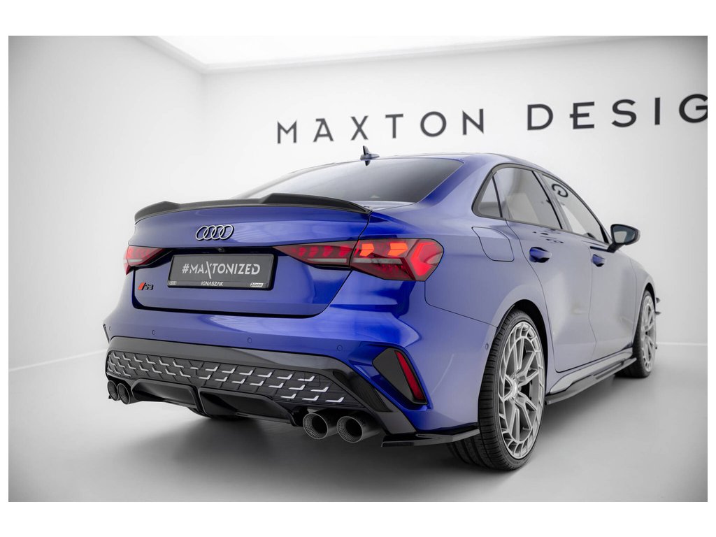 Maxton Design boční difuzory pod zadní nárazník ver.1 pro vozidlo Audi S3 8Y Facelift . Povrchová úprava spoileru černý lesklý plast ABS.