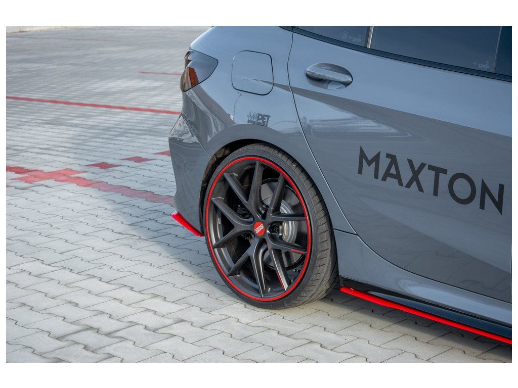 Maxton Design boční difuzory pod zadní nárazník ver.2 pro vozidlo BMW řada 1 F40 . Povrchová úprava spoileru červený lesklý plast ABS.