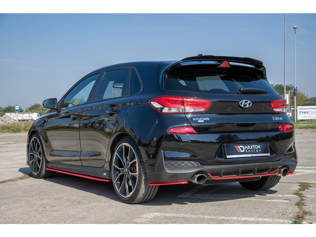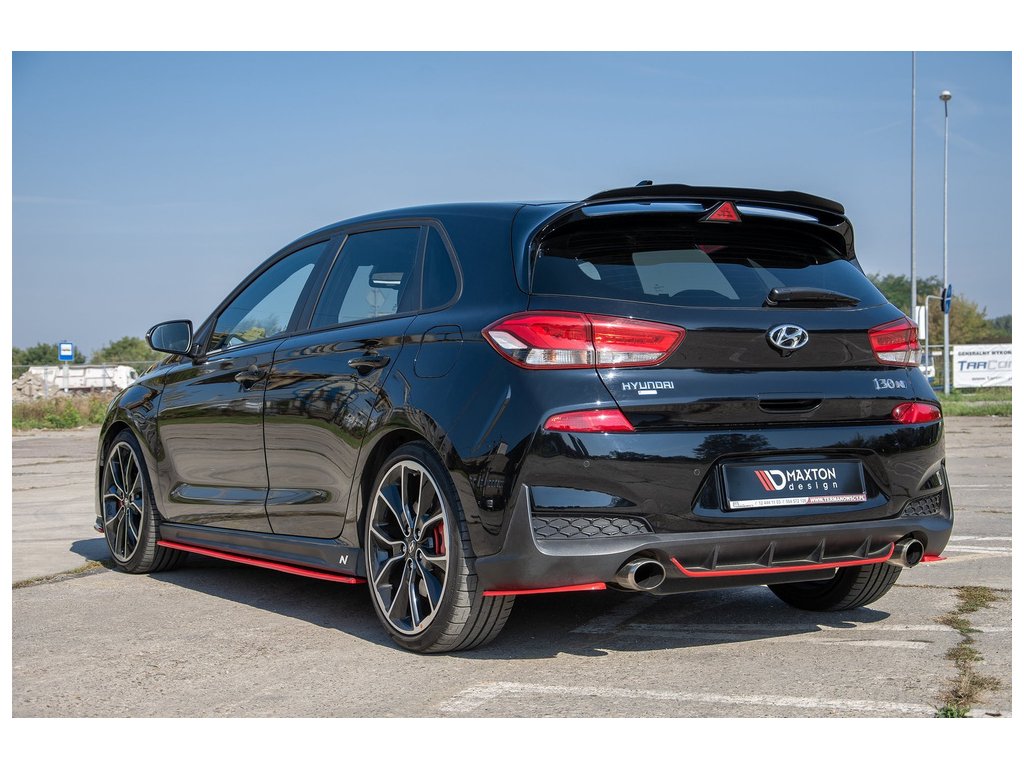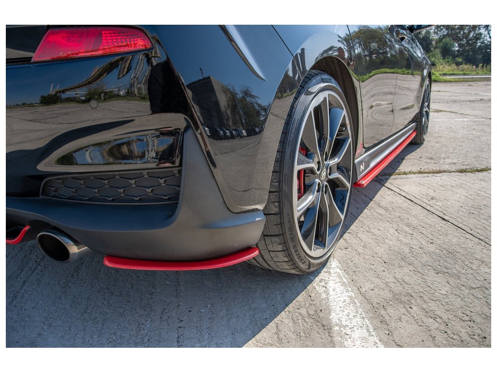 Maxton Design boční difuzory pod zadní nárazník ver.2 pro vozidlo Hyundai i30 N Mk3 . Povrchová úprava spoileru červený lesklý plast ABS.