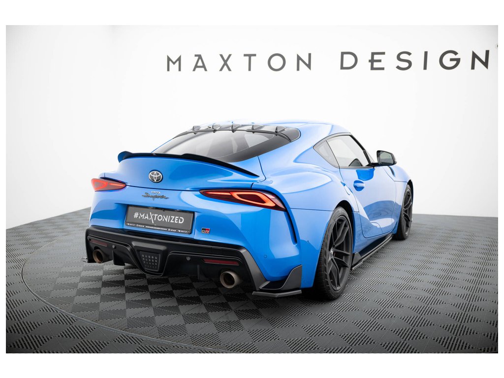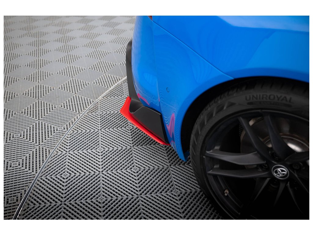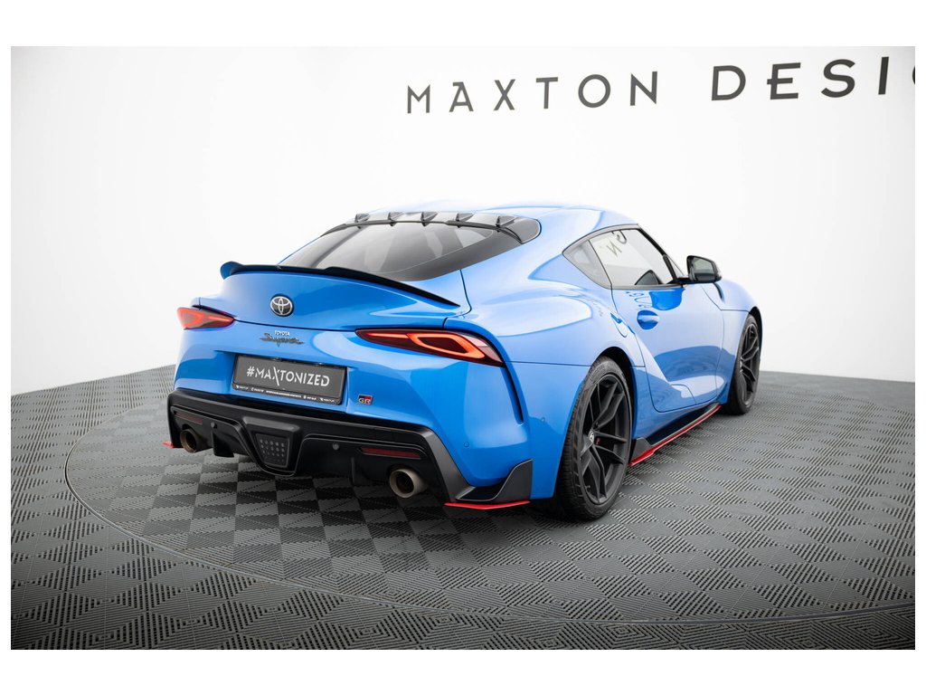 Maxton Design boční difuzory pod zadní nárazník ver.2 pro vozidlo Toyota Supra Mk5 . Povrchová úprava spoileru červený lesklý plast ABS.