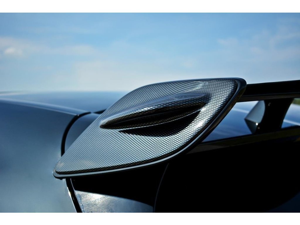 Maxton Design boční nástavce střešního spoileru pro vozidlo Mercedes třída A W176/AMG . Povrchová úprava spoileru carbon-Look.