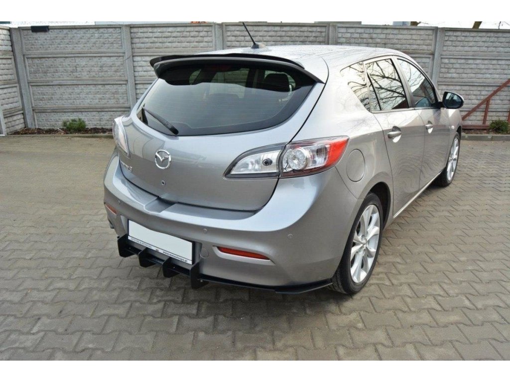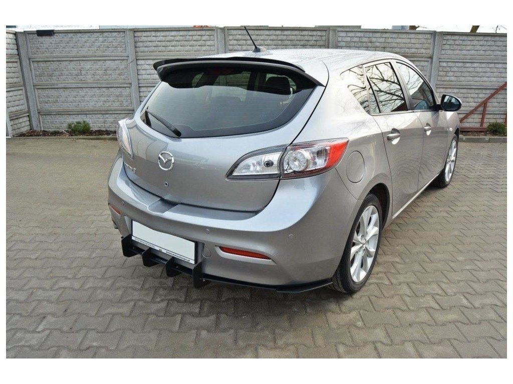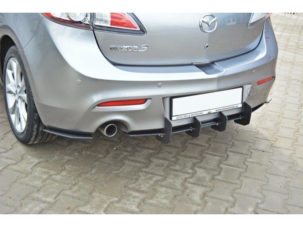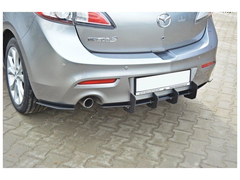 Maxton Design difuzor zadního nárazníku s bočními nástavci pro vozidlo Mazda 3 Mk2 . Povrchová úprava spoileru plast ABS bez povrchové úpravy.
