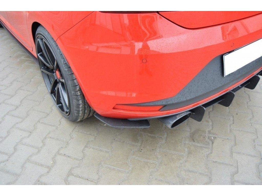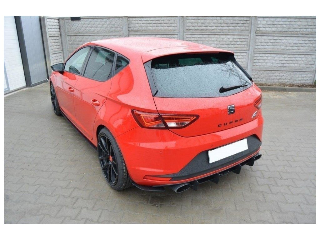 Maxton Design difuzor zadního nárazníku s bočními nástavci pro vozidlo Seat Leon Cupra Mk3 . Povrchová úprava spoileru plast ABS bez povrchové úpravy.
