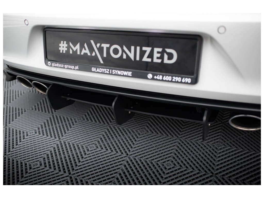 Maxton Design difuzor zadního nárazníku s bočními nástavci pro vozidlo Volkswagen Golf R Mk7 . Povrchová úprava spoileru plast ABS bez povrchové úpravy.