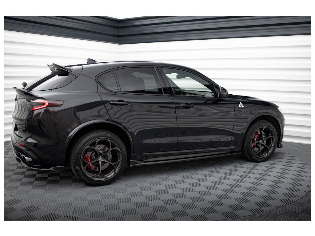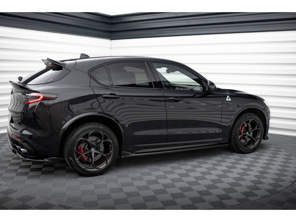 Maxton Design difuzory pod boční prahy pro vozidlo Alfa Romeo Stelvio . Povrchová úprava spoileru černý lesklý plast ABS.