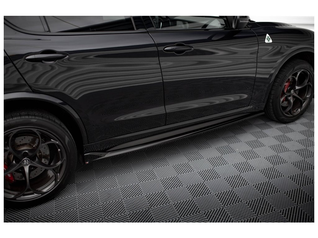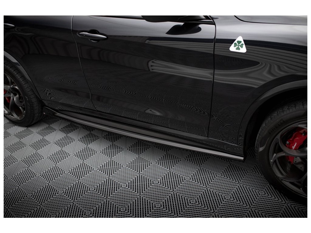 Side Skirts Diffusers Alfa Romeo Stelvio Quadrifoglio Mk1, povrchová úprava černý lesklý plast ABS.