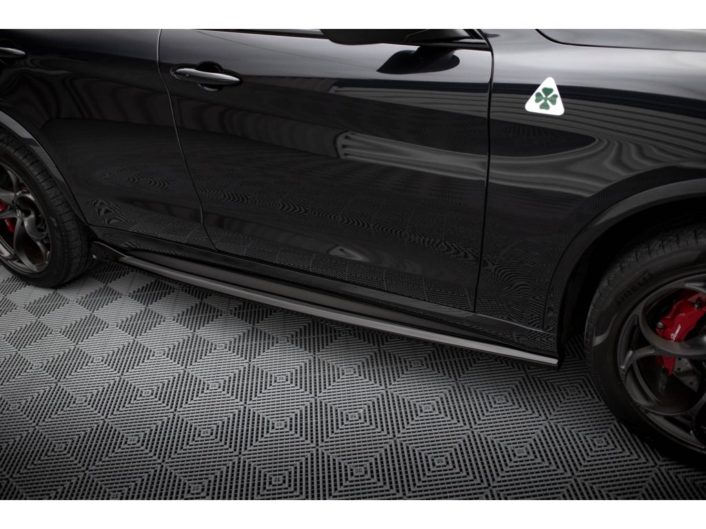 Maxton Design difuzory pod boční prahy pro Alfa Romeo Stelvio, černý lesklý plast ABS, Quadrifoglio