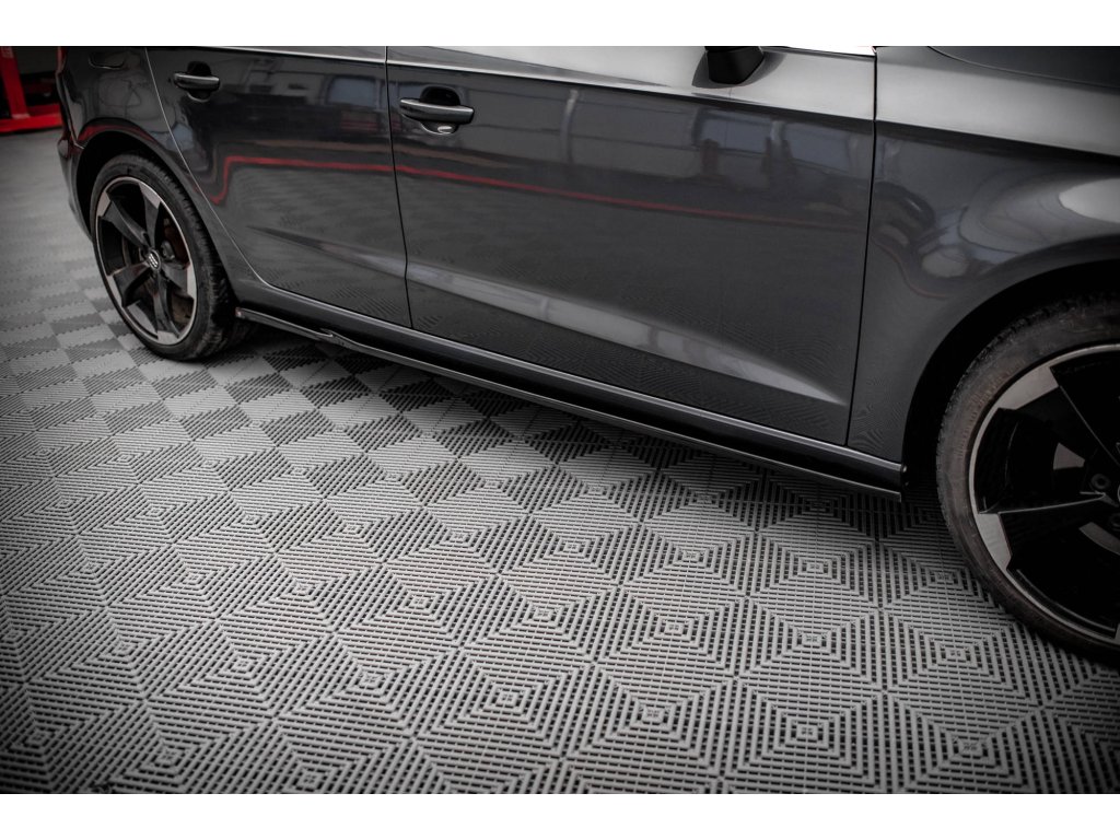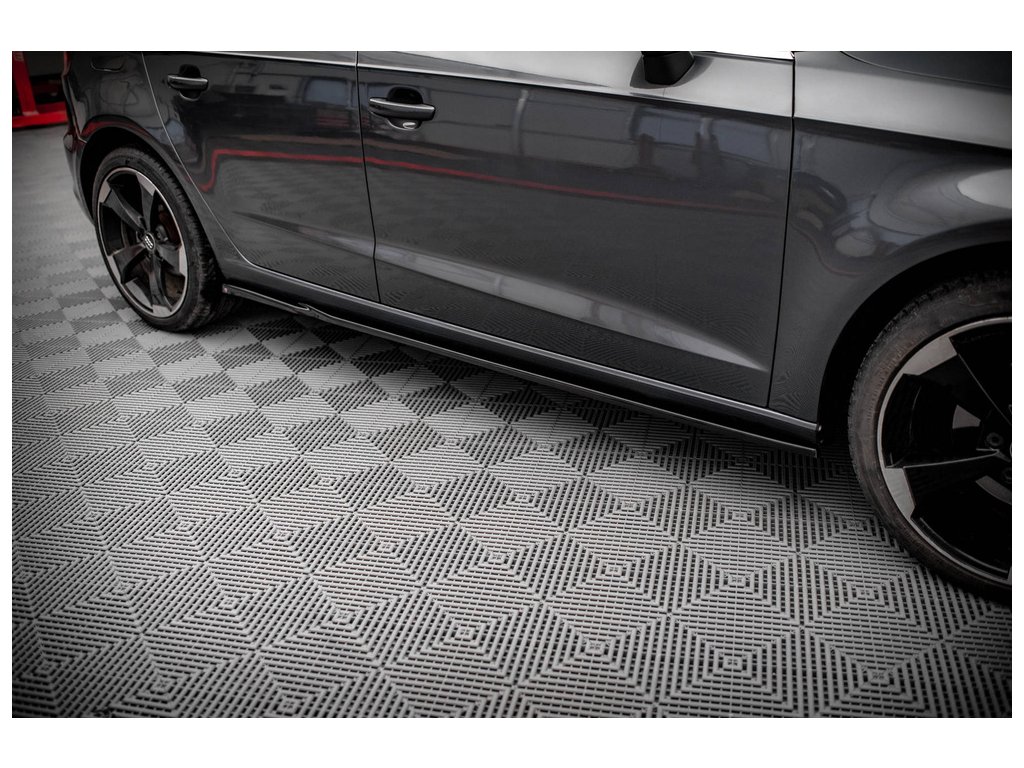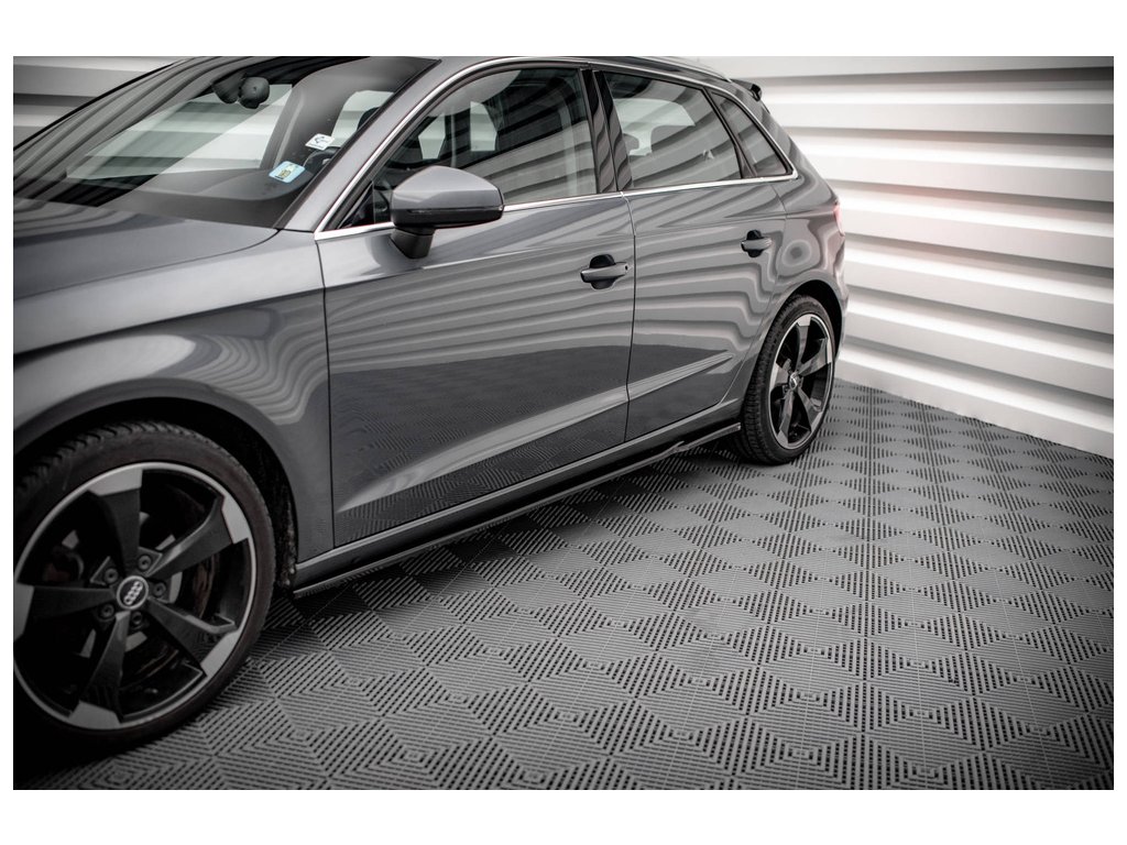 Maxton Design difuzory pod boční prahy pro vozidlo Audi A3 8V . Povrchová úprava spoileru černý lesklý plast ABS.