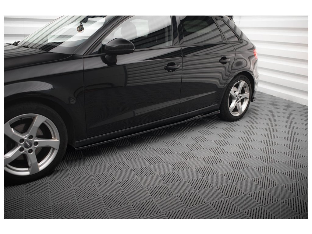 Side Skirts Diffusers Audi A3 Sportback 8V Facelift, povrchová úprava černý lesklý plast ABS.