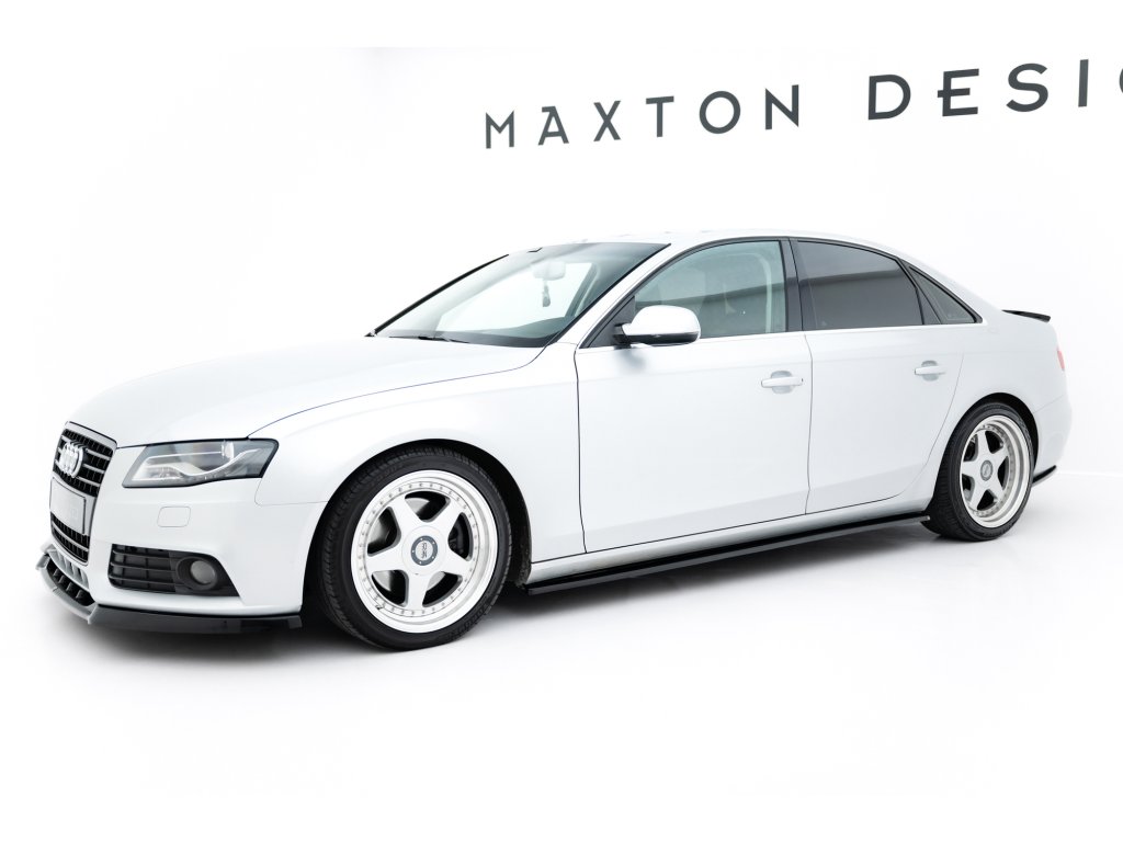 Maxton Design difuzory pod boční prahy pro vozidlo Audi A4 B8 Facelift. Povrchová úprava spoileru černý lesklý plast ABS.