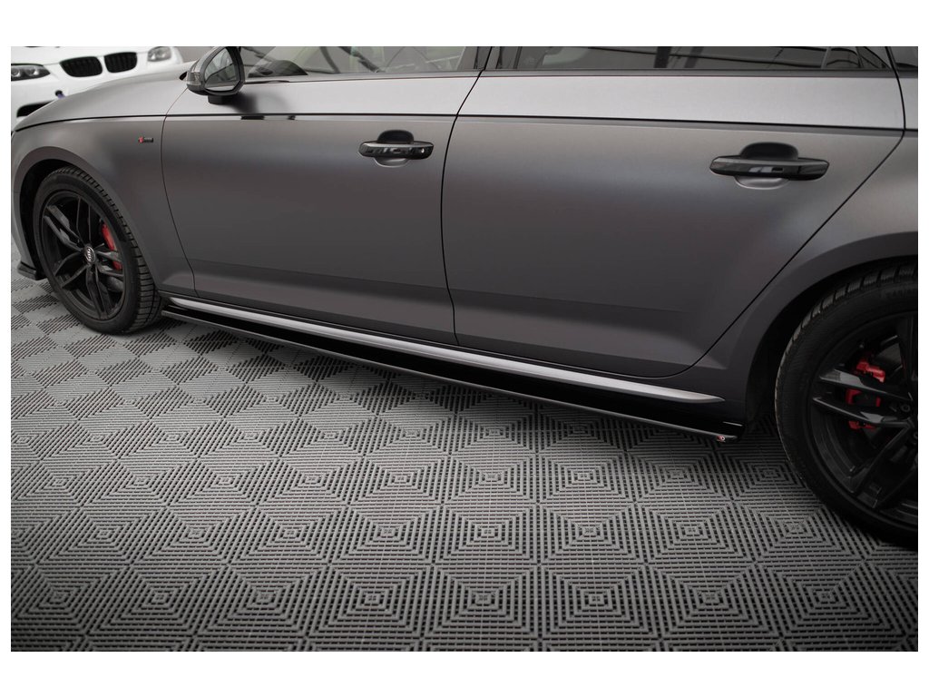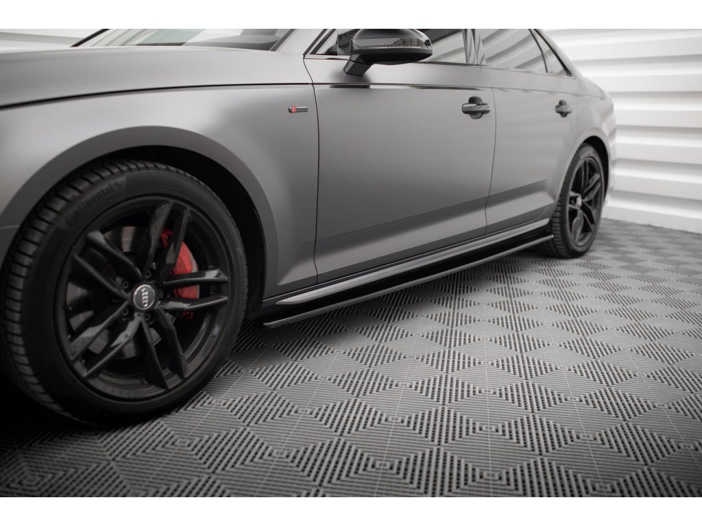 Maxton Design difuzory pod boční prahy pro vozidlo Audi A4 B9 . Povrchová úprava spoileru černý lesklý plast ABS.