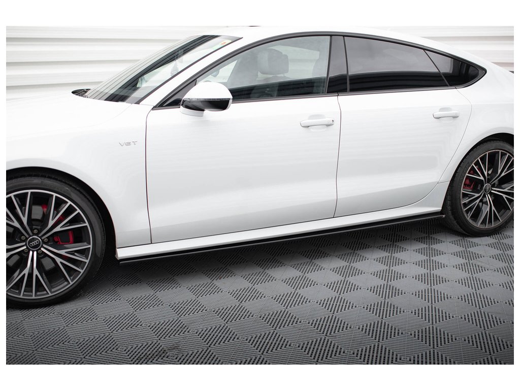 Maxton Design difuzory pod boční prahy pro vozidlo Audi A7, S7 C7 FL Facelift. Povrchová úprava spoileru černý lesklý plast ABS.