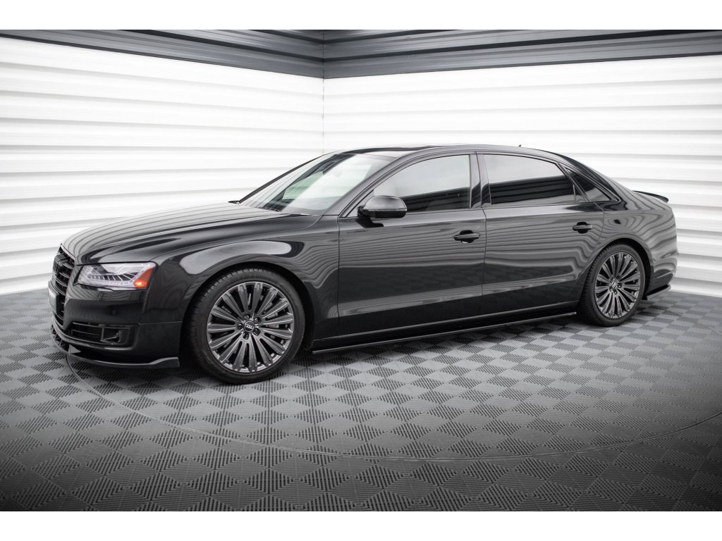 Maxton Design difuzory pod boční prahy pro vozidlo Audi A8 D4 . Povrchová úprava spoileru černý lesklý plast ABS.