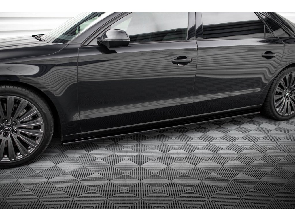Difuzory bočních prahů Audi A8 Long D4, povrchová úprava černý lesklý plast ABS.