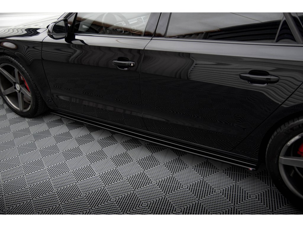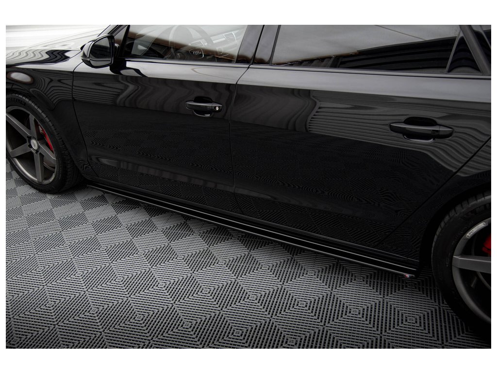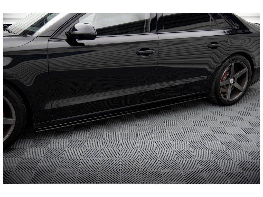 Difuzory bočních prahů Audi A8 D4, povrchová úprava černý lesklý plast ABS.