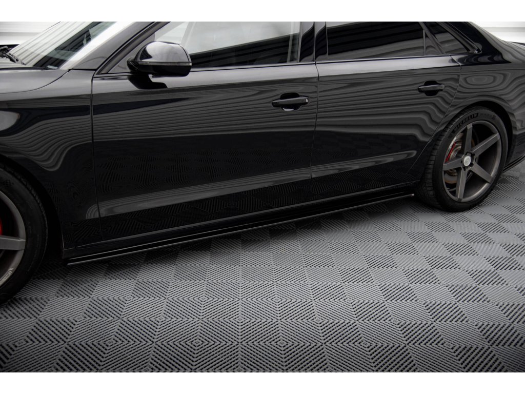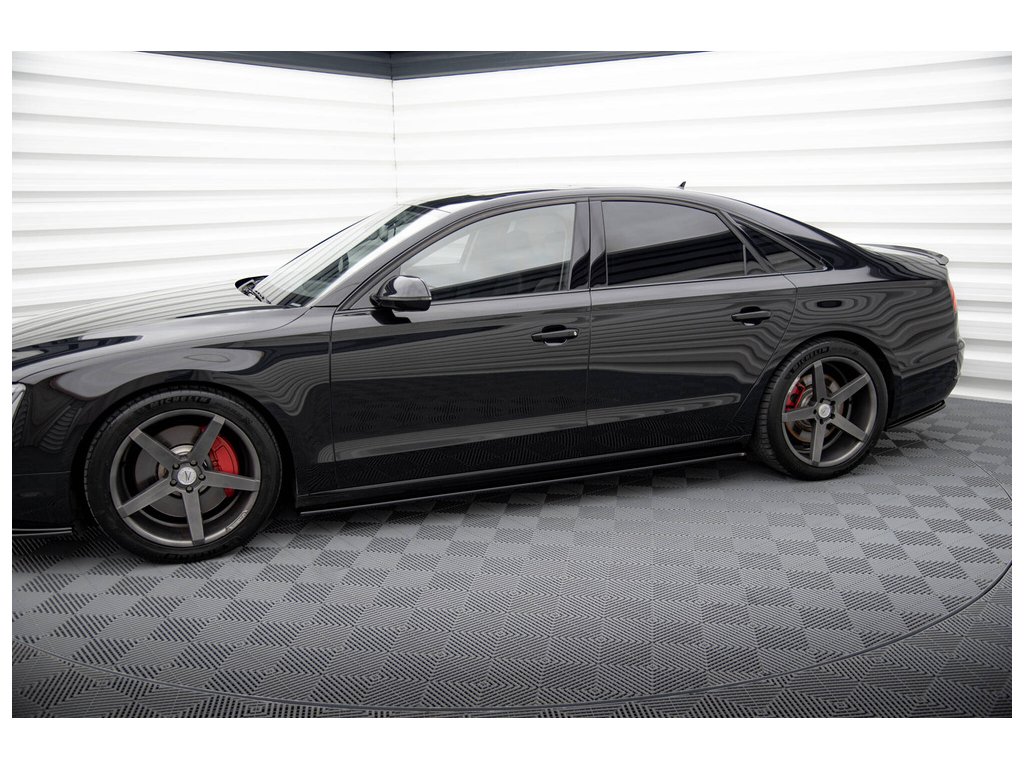 Maxton Design difuzory pod boční prahy pro vozidlo Audi A8 D4 . Povrchová úprava spoileru černý lesklý plast ABS.