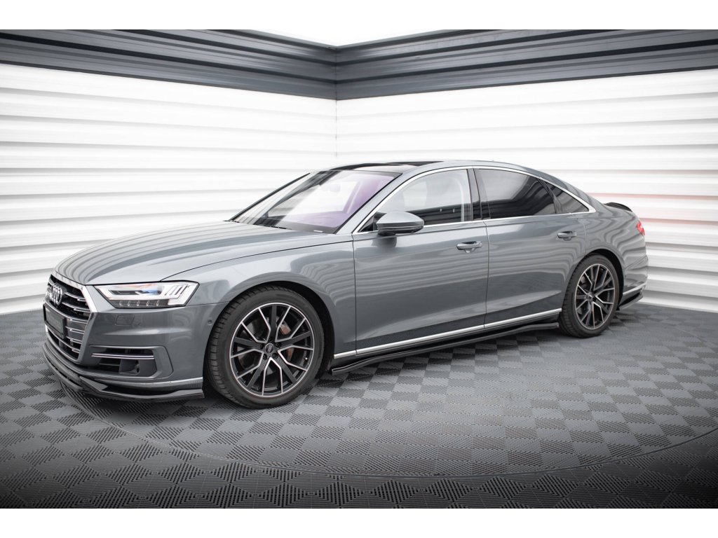 Maxton Design difuzory pod boční prahy pro Audi A8 D5, černý lesklý plast ABS