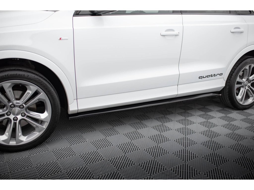 Maxton Design difuzory pod boční prahy pro vozidlo Audi Q3 8U . Povrchová úprava spoileru černý lesklý plast ABS.