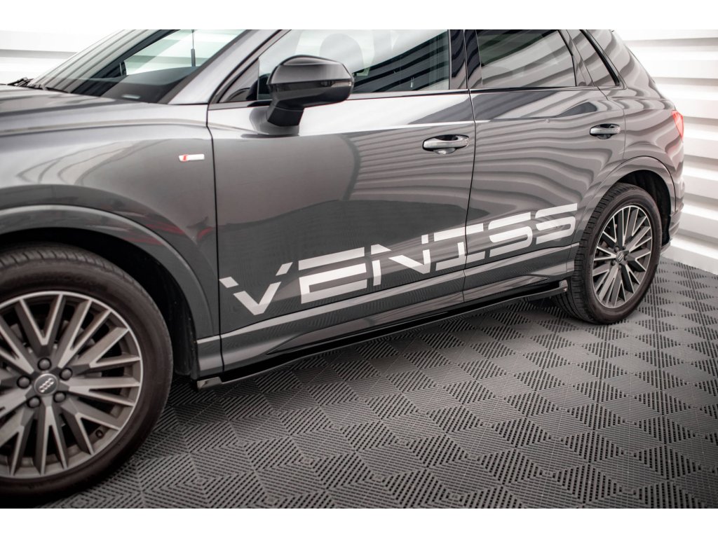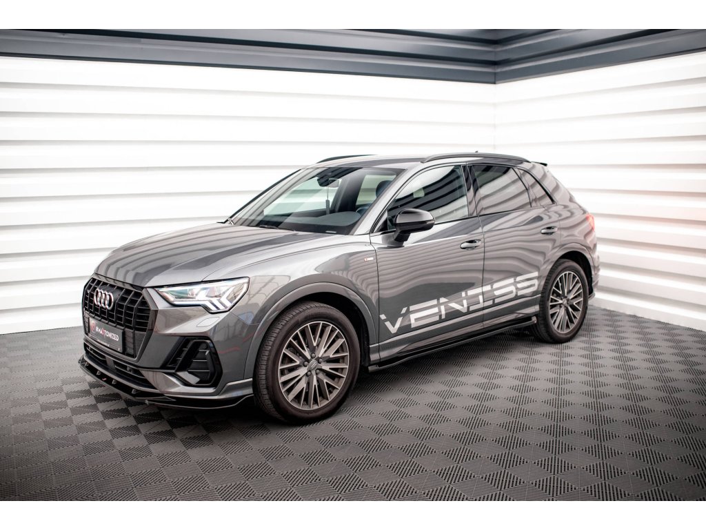 Maxton Design difuzory pod boční prahy pro vozidlo Audi Q3 F3 S-Line . Povrchová úprava spoileru černý lesklý plast ABS.