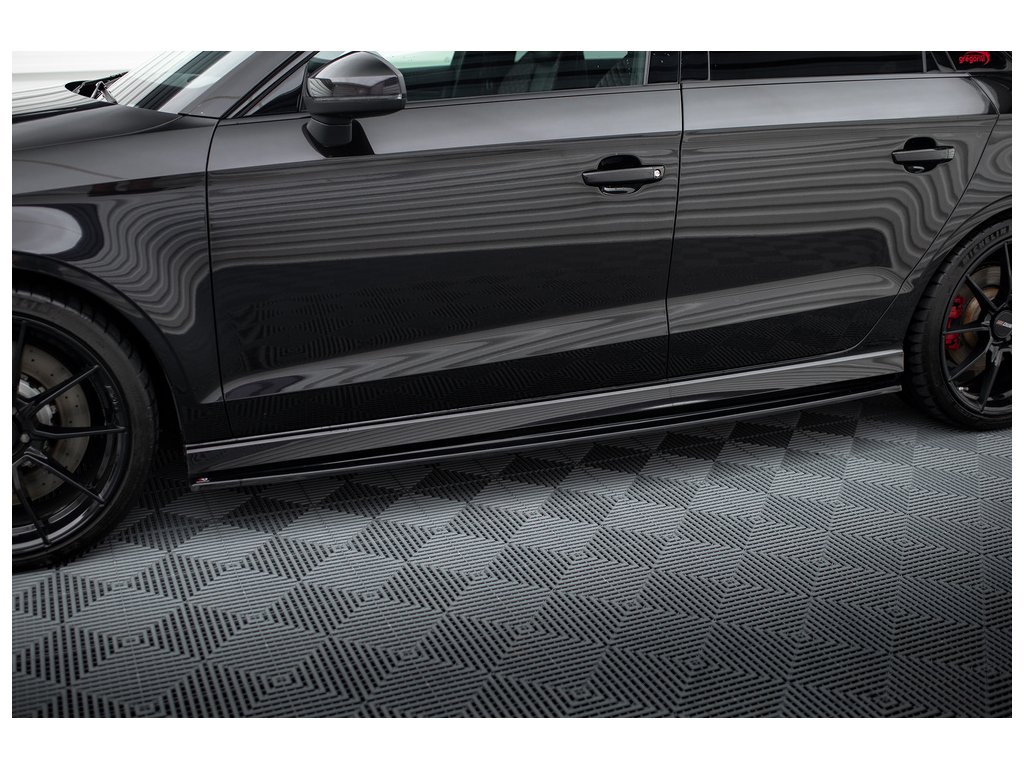 Difuzory bočních prahů Audi RS3 8V FL Sedan, povrchová úprava černý lesklý plast ABS.