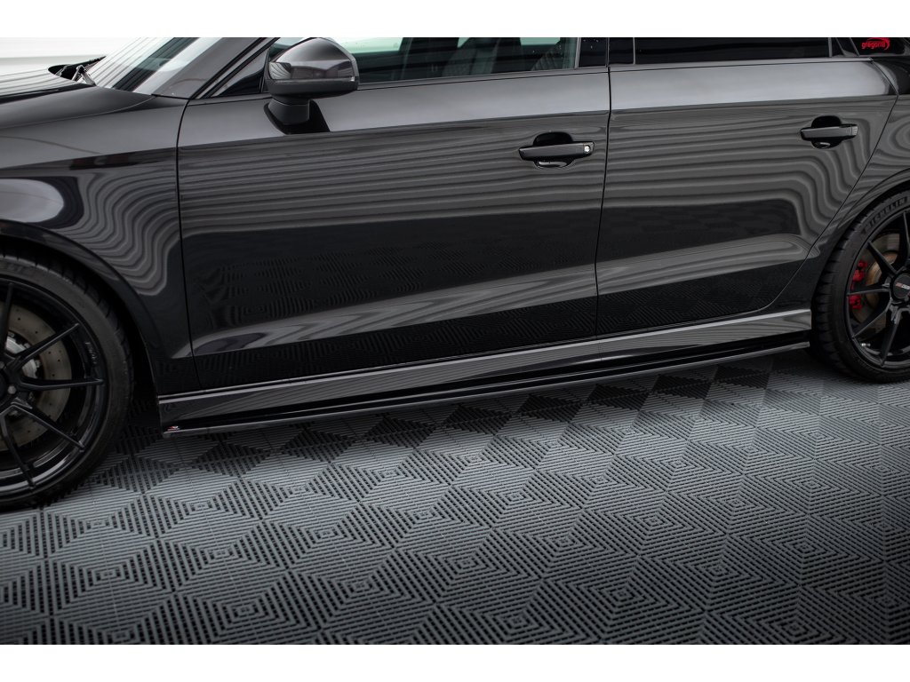 Maxton Design difuzory pod boční prahy pro vozidlo Audi RS3 8V Facelift . Povrchová úprava spoileru černý lesklý plast ABS.