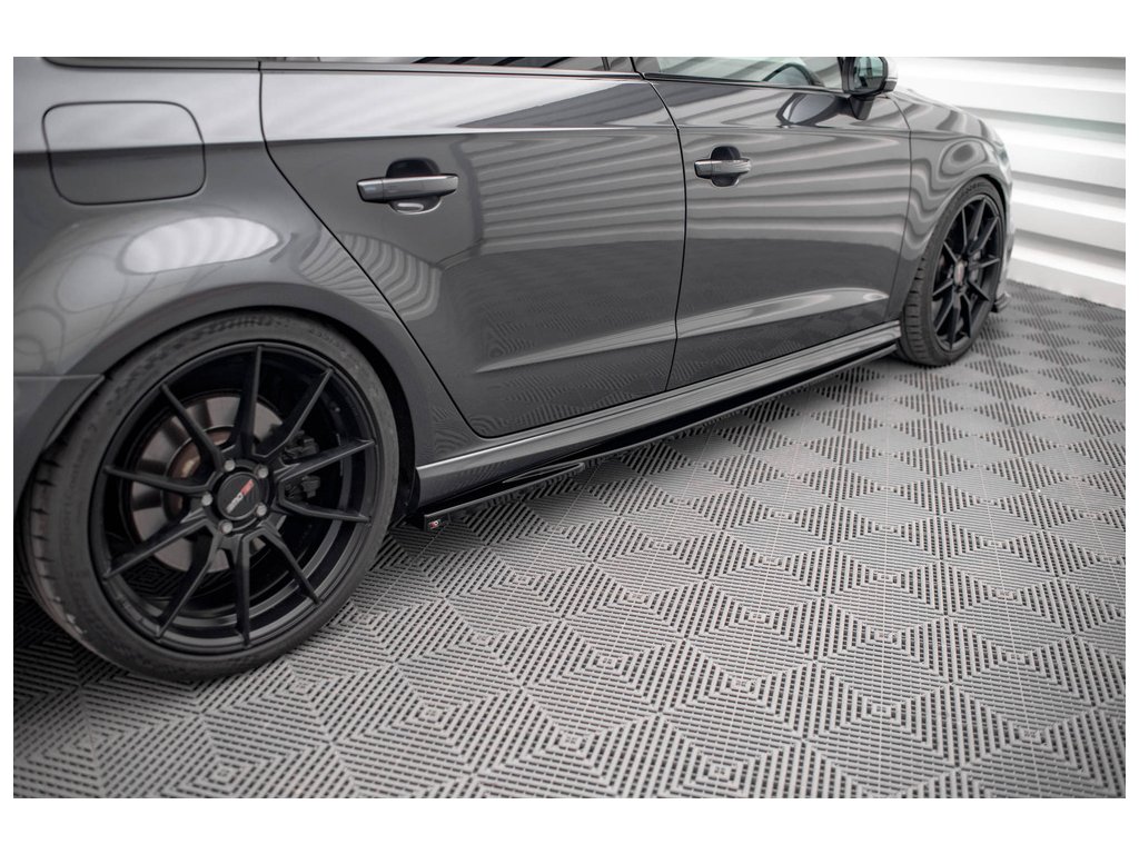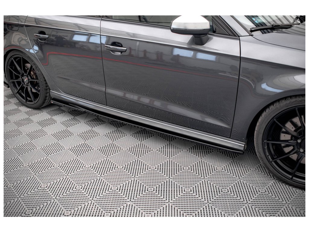 Maxton Design difuzory pod boční prahy pro vozidlo Audi S3 8V FL . Povrchová úprava spoileru černý lesklý plast ABS.