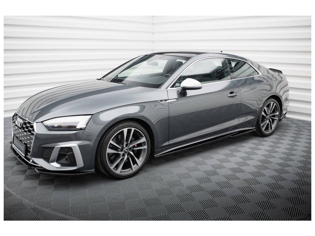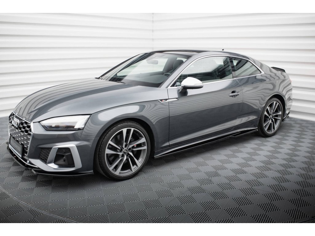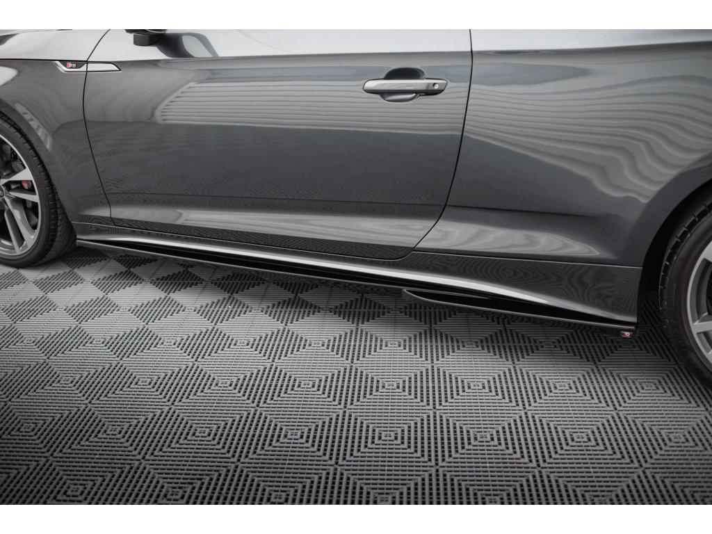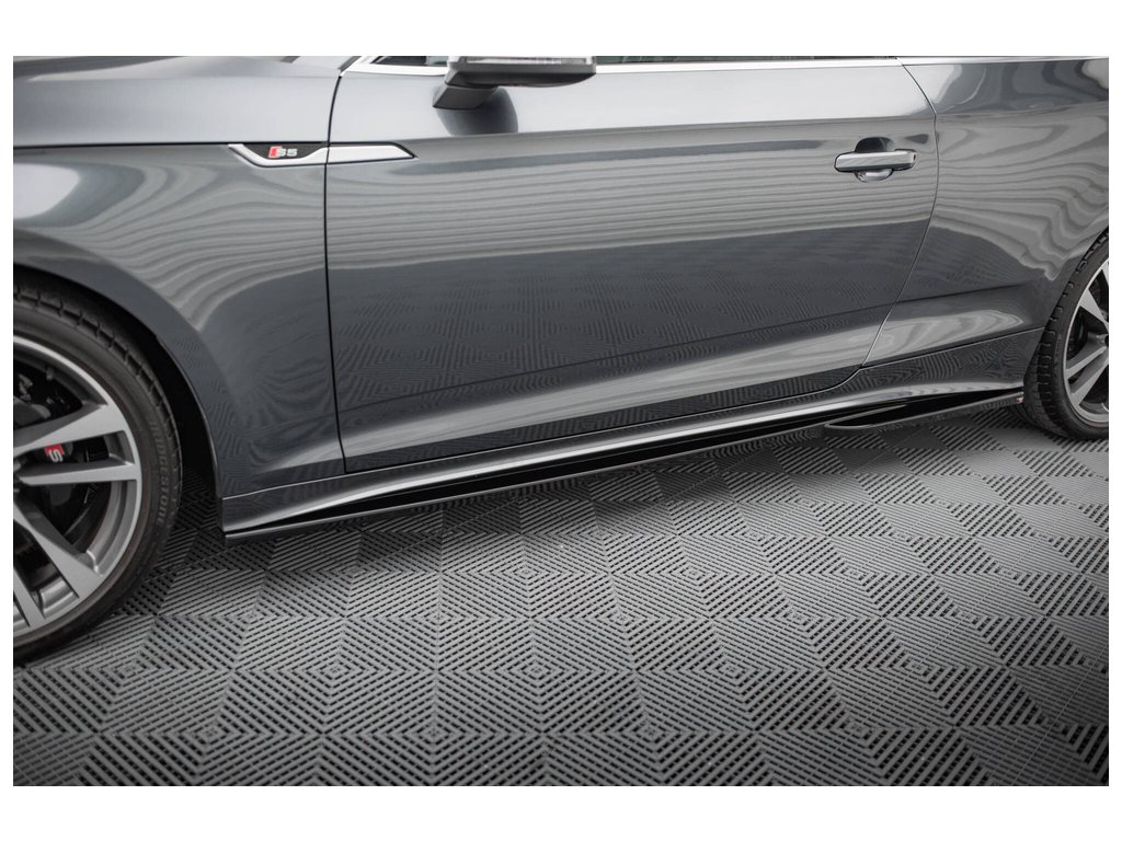 Maxton Design difuzory pod boční prahy pro vozidlo Audi S5 F5 FL . Povrchová úprava spoileru černý lesklý plast ABS.