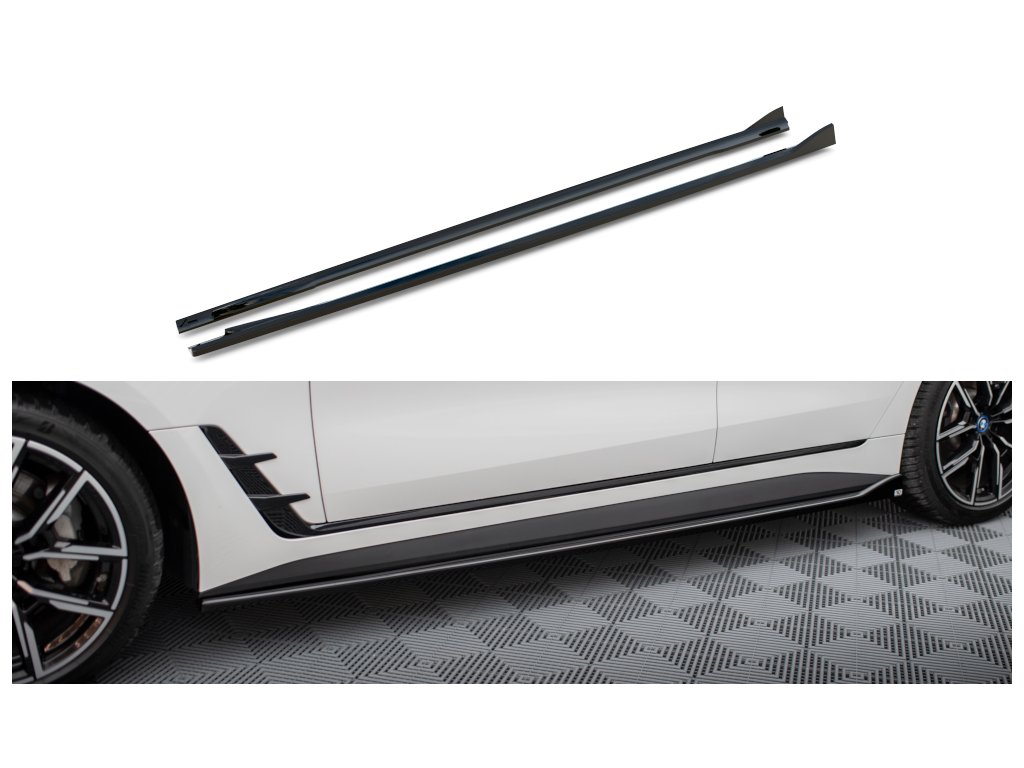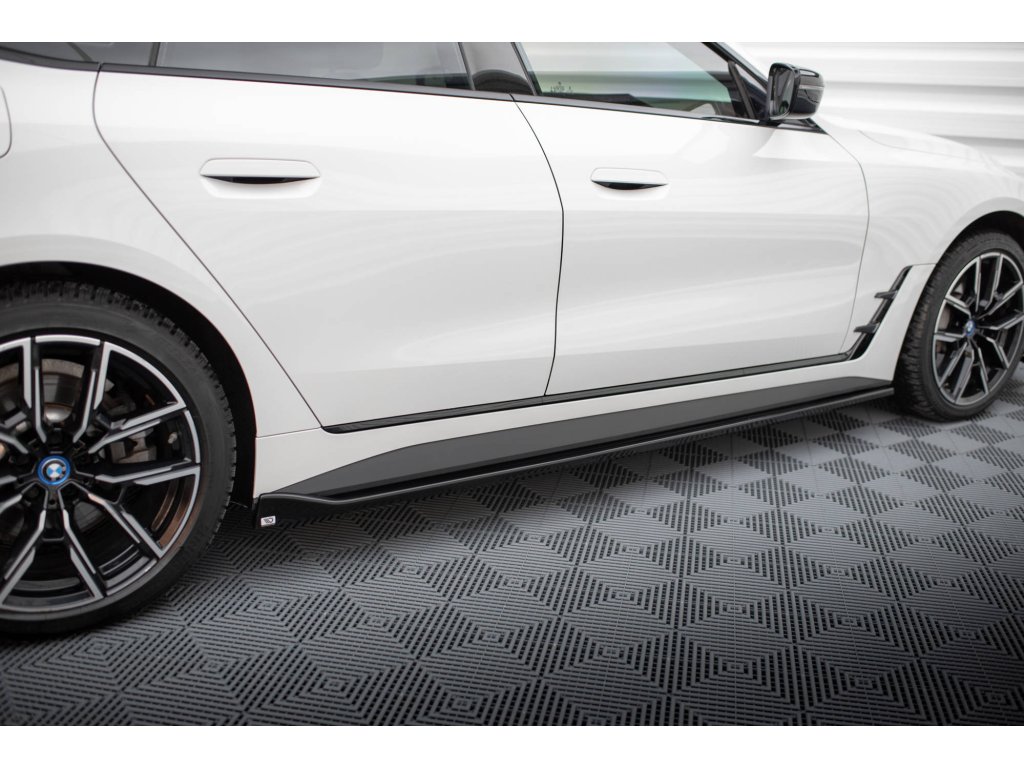 Maxton Design difuzory pod boční prahy pro vozidlo BMW i4 G26 M-Pack . Povrchová úprava spoileru carbon-Look.