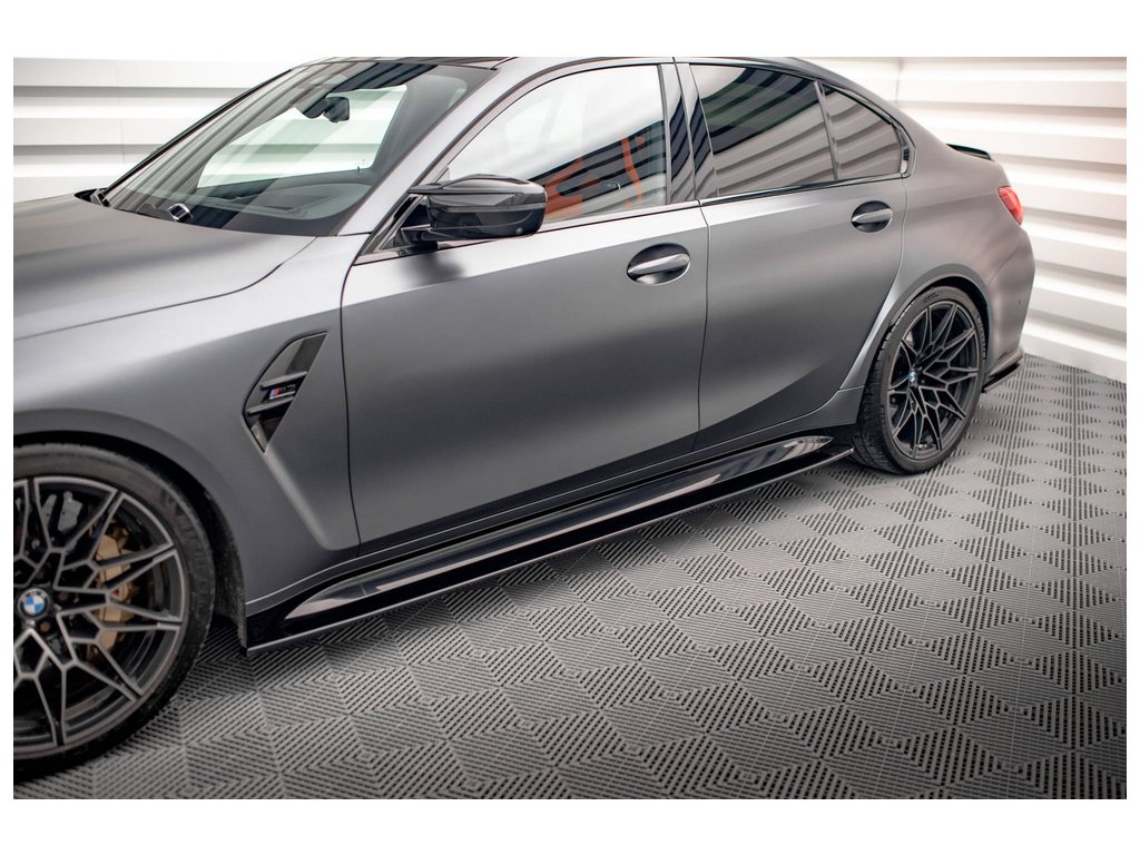 Maxton Design difuzory pod boční prahy pro vozidlo BMW M3 G80 . Povrchová úprava spoileru černý lesklý plast ABS.