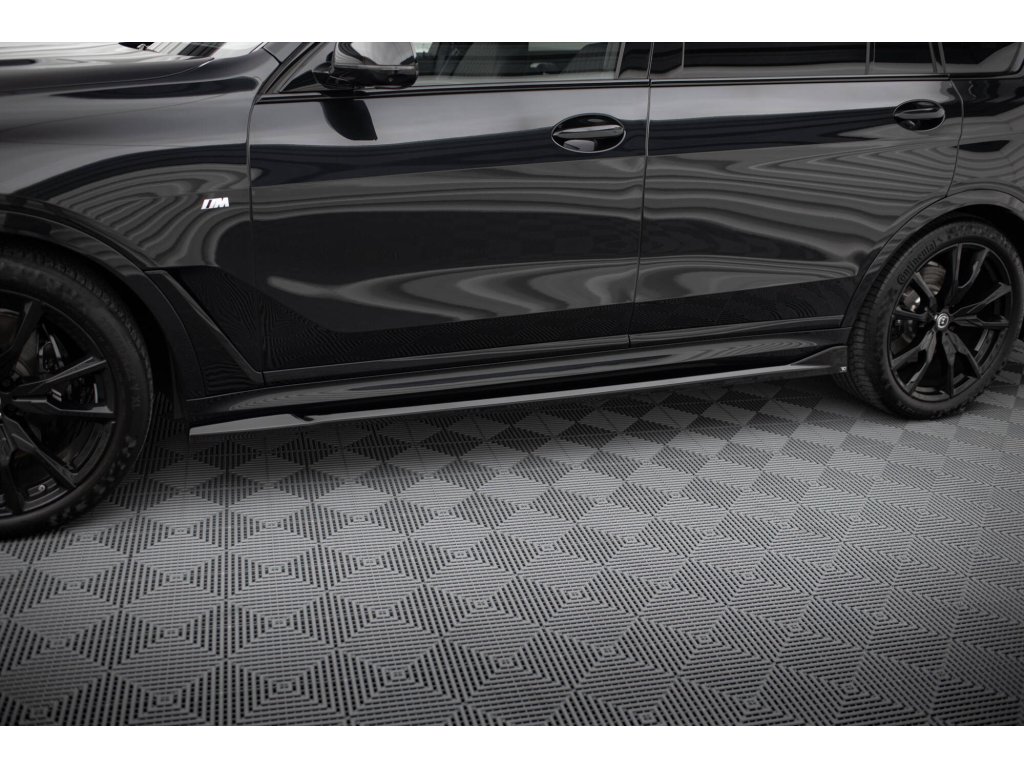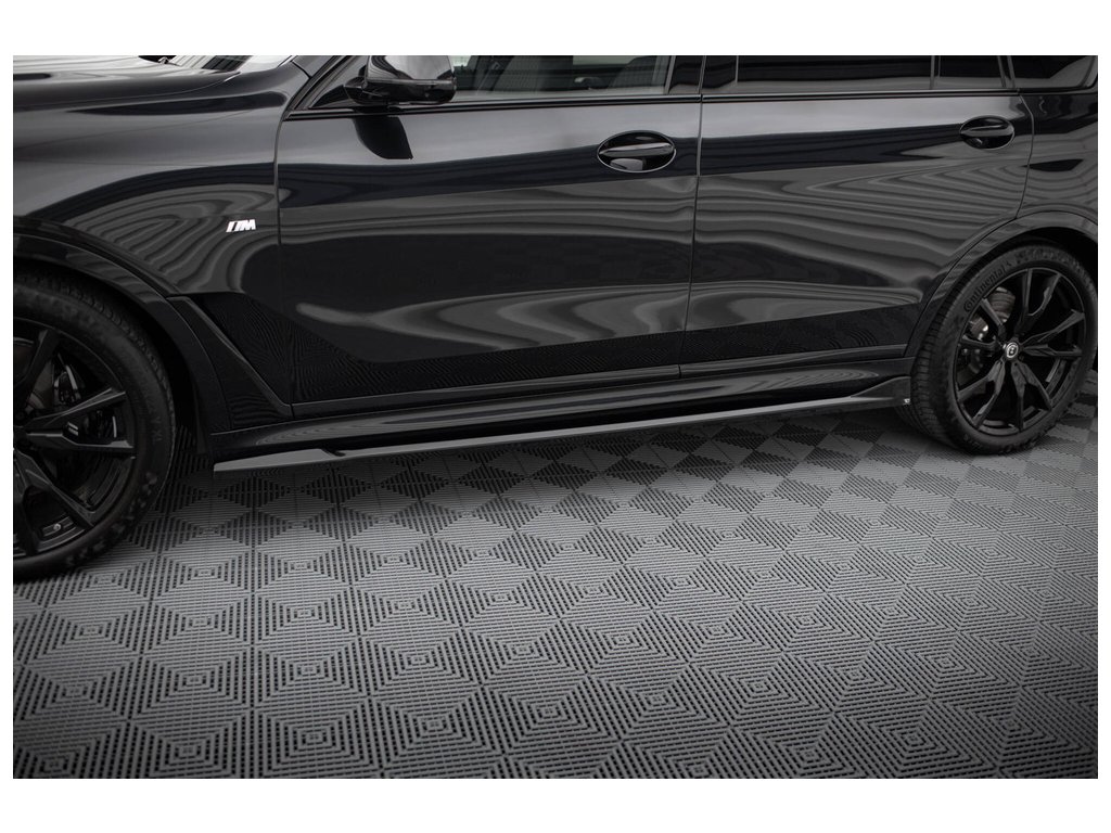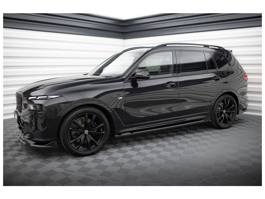 Maxton Design difuzory pod boční prahy pro vozidlo BMW X7 G07 Facelift M-Pack . Povrchová úprava spoileru černý lesklý plast ABS.