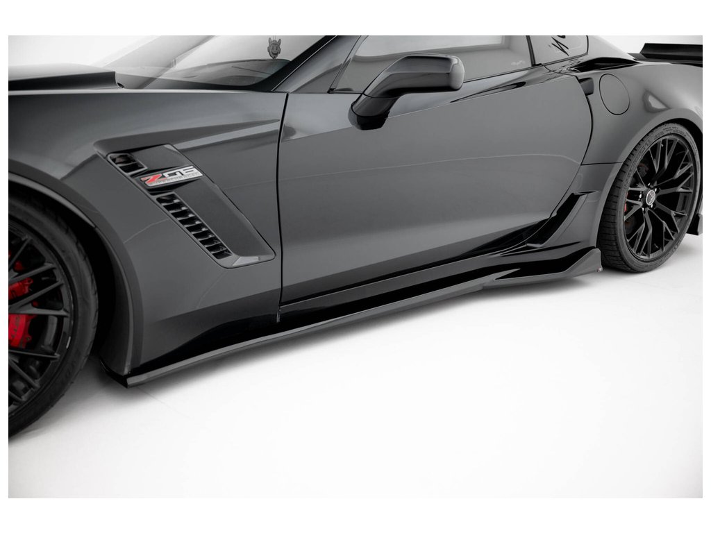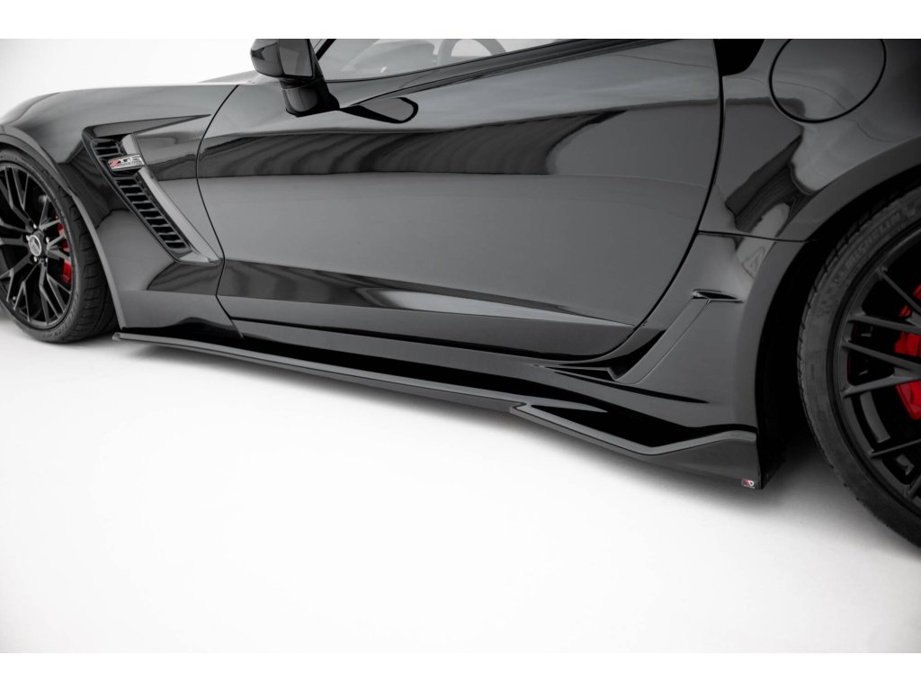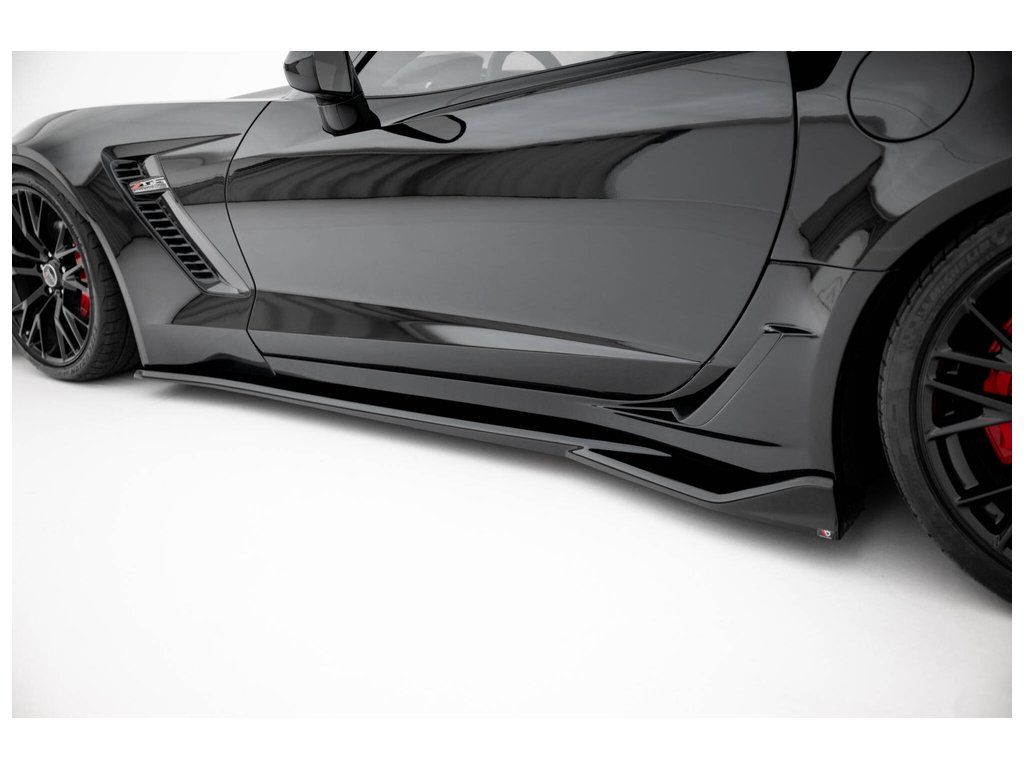 Maxton Design difuzory pod boční prahy pro vozidlo Chevrolet Corvette C7 . Povrchová úprava spoileru černý lesklý plast ABS.