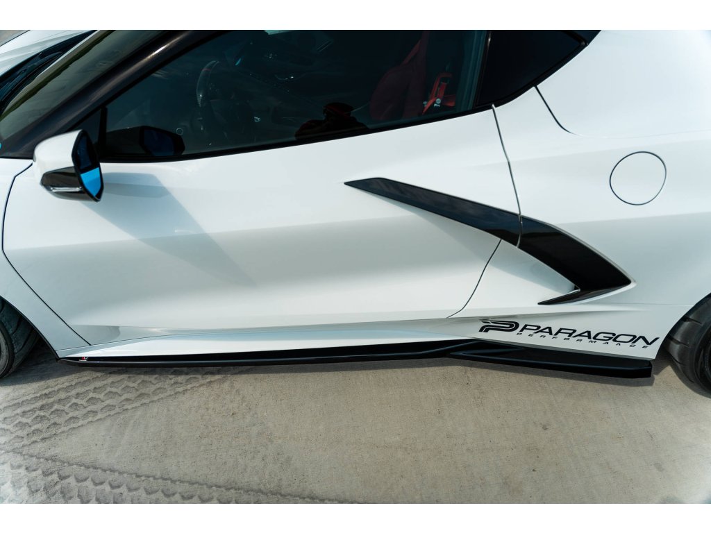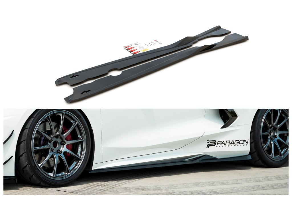 Maxton Design difuzory pod boční prahy pro vozidlo Chevrolet Corvette C8 . Povrchová úprava spoileru carbon-Look.