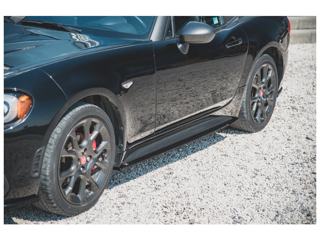 Maxton Design difuzory pod boční prahy pro vozidlo Fiat 124 Spider Abarth . Povrchová úprava spoileru černý lesklý plast ABS.
