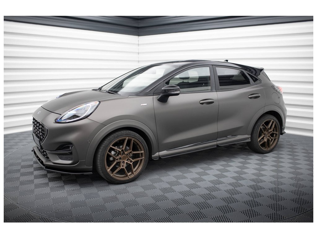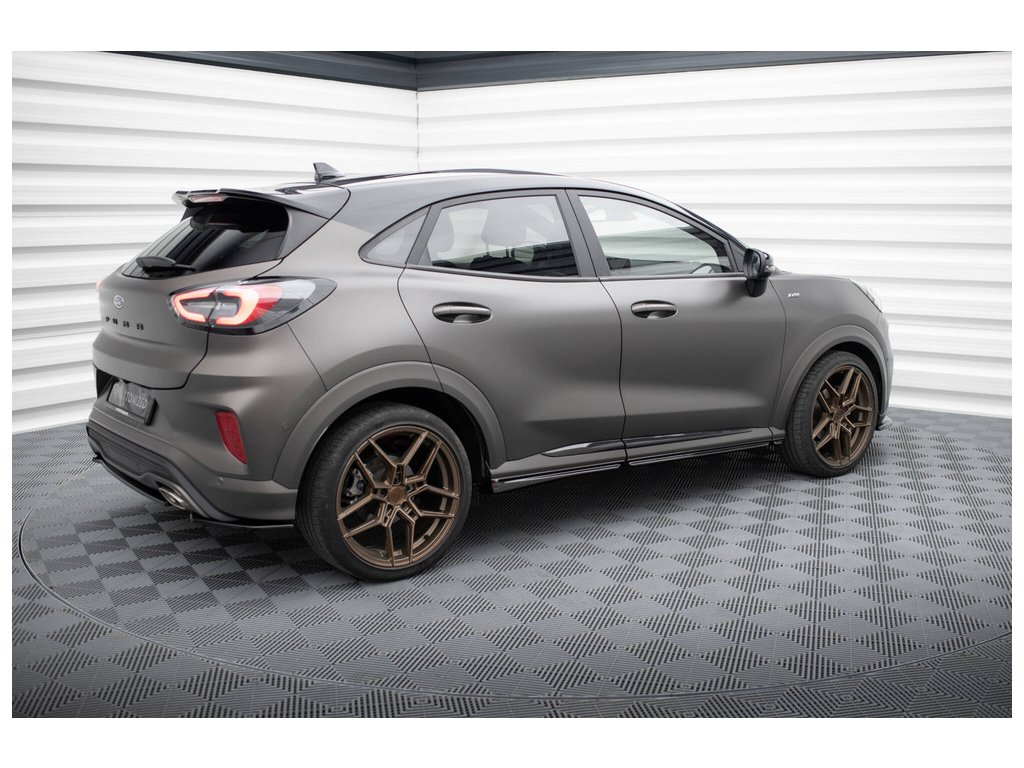Maxton Design difuzory pod boční prahy pro vozidlo Ford Puma ST-Line . Povrchová úprava spoileru černý lesklý plast ABS.