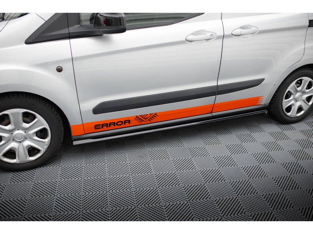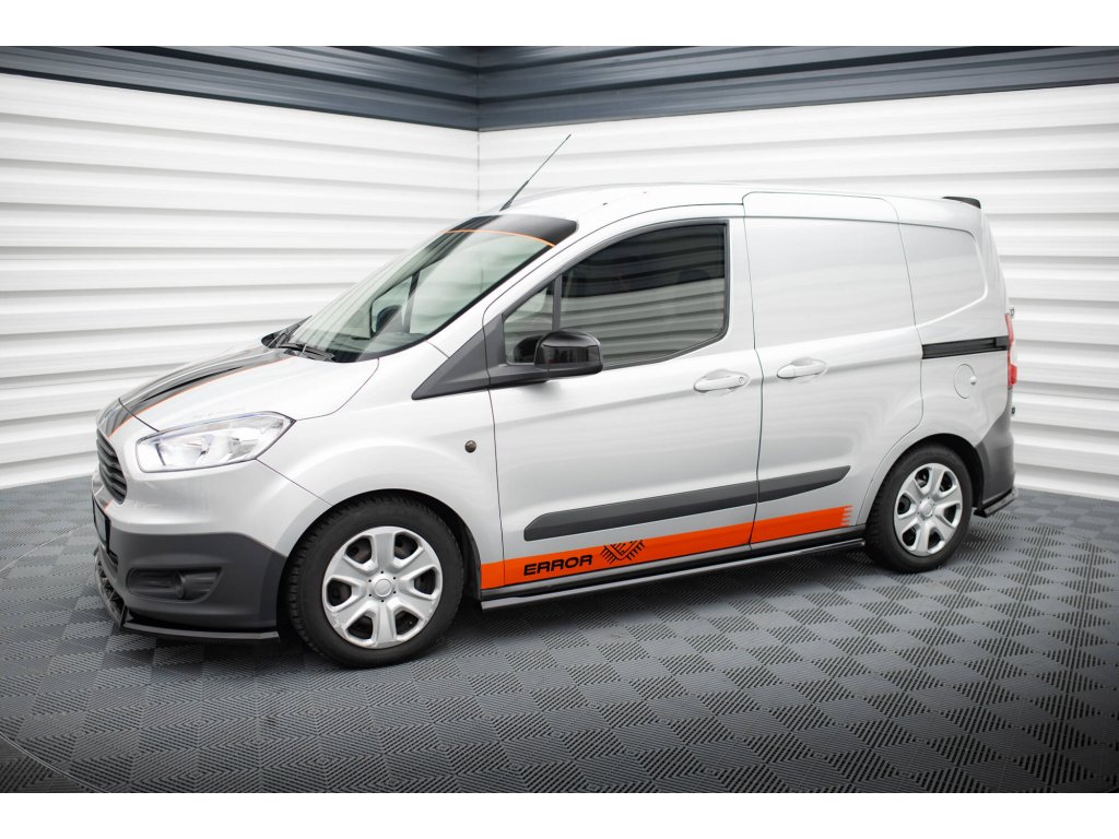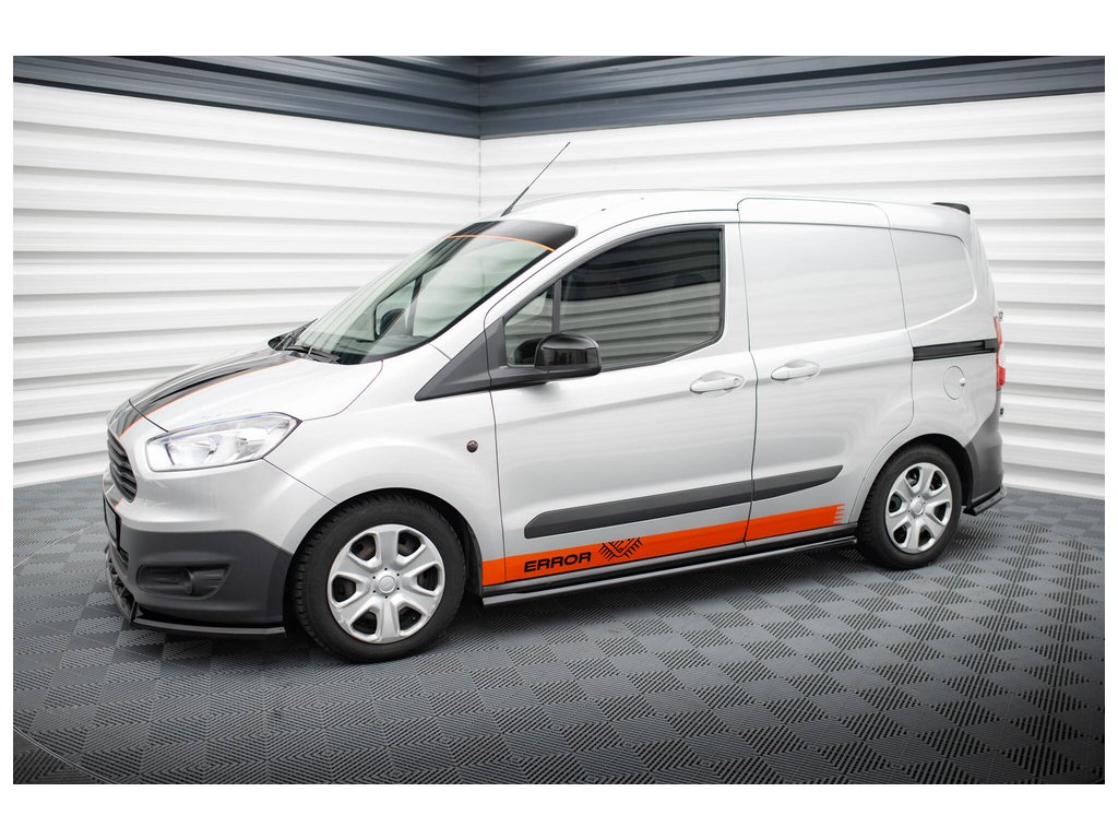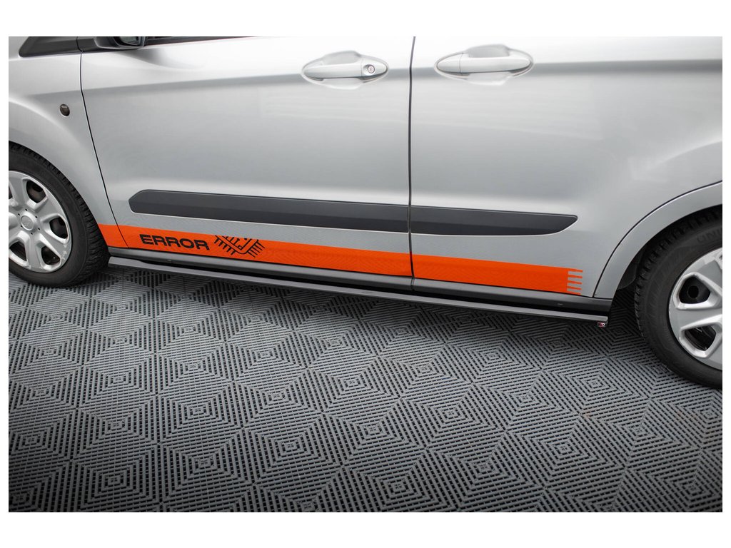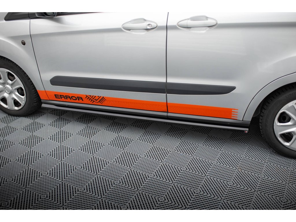 Maxton Design difuzory pod boční prahy pro vozidlo Ford Transit Courier Mk1 . Povrchová úprava spoileru černý lesklý plast ABS.