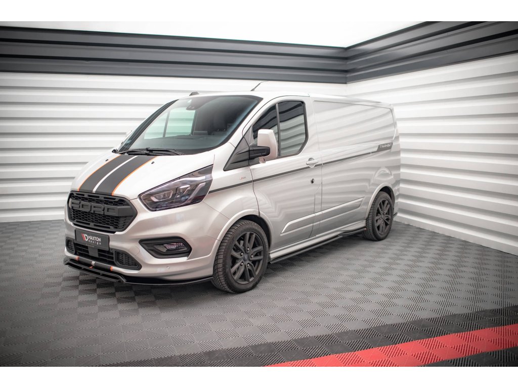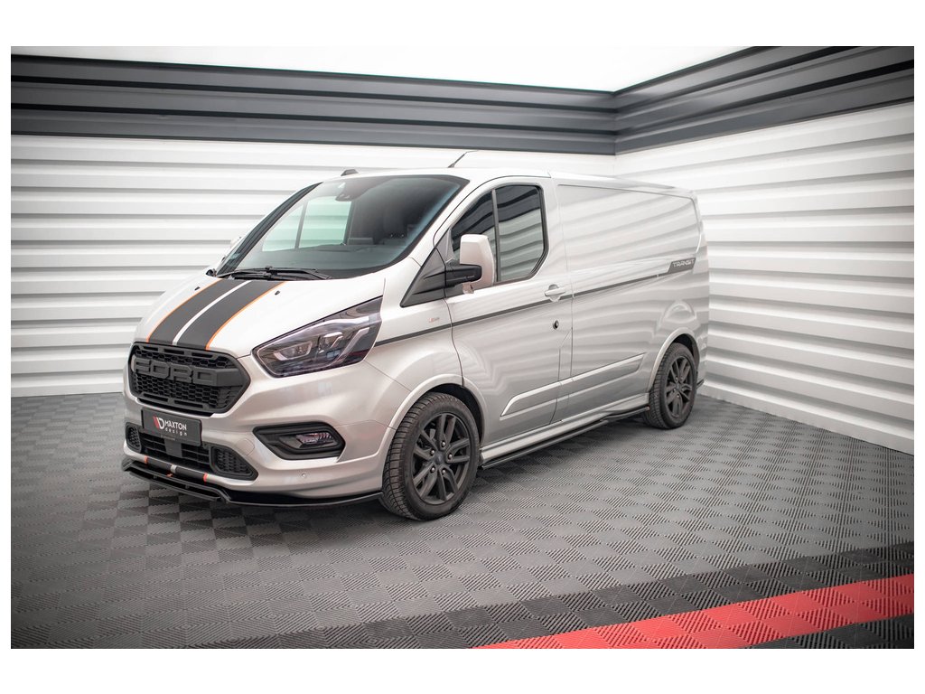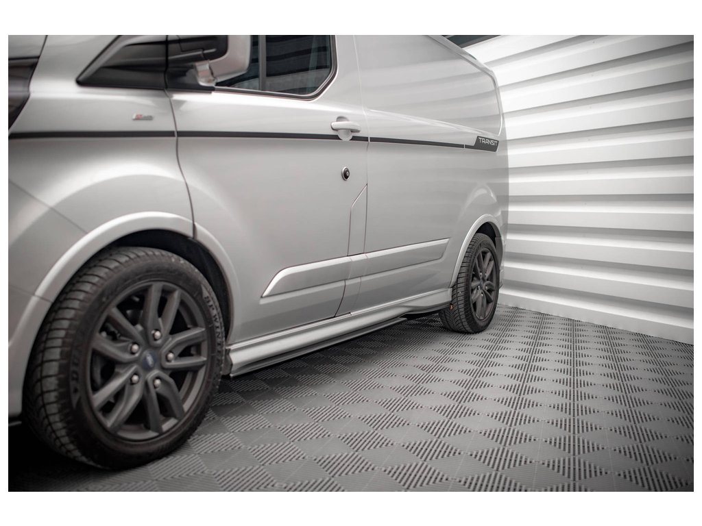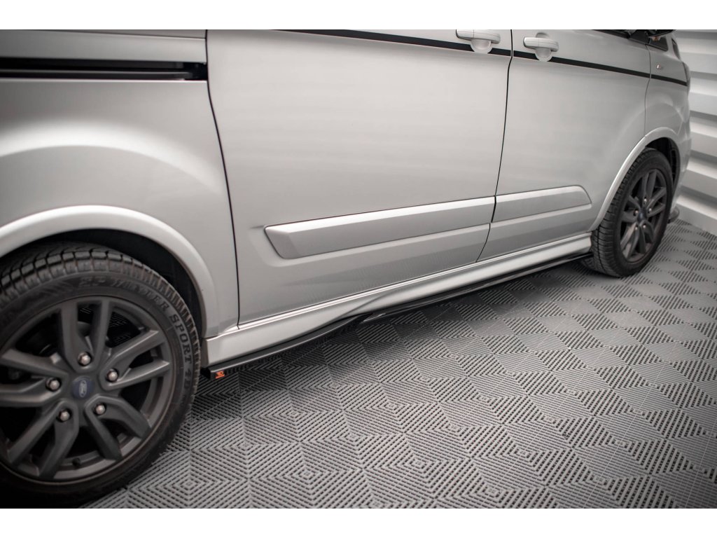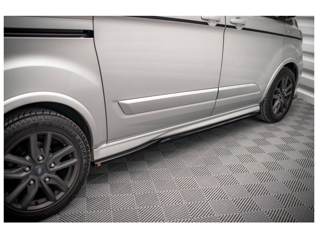 Maxton Design difuzory pod boční prahy pro vozidlo Ford Transit Custom Mk1 Facelift ST-Line . Povrchová úprava spoileru černý lesklý plast ABS.