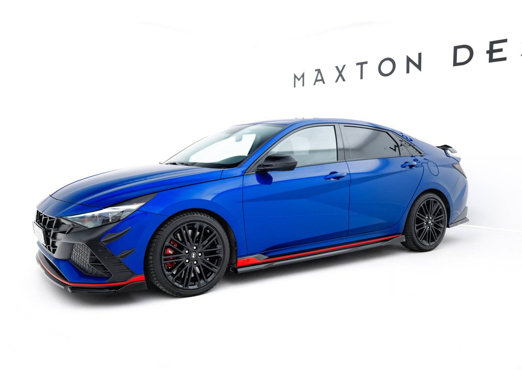 Maxton Design difuzory pod boční prahy pro vozidlo Hyundai Elantra N Mk7 . Povrchová úprava spoileru černý lesklý plast ABS.