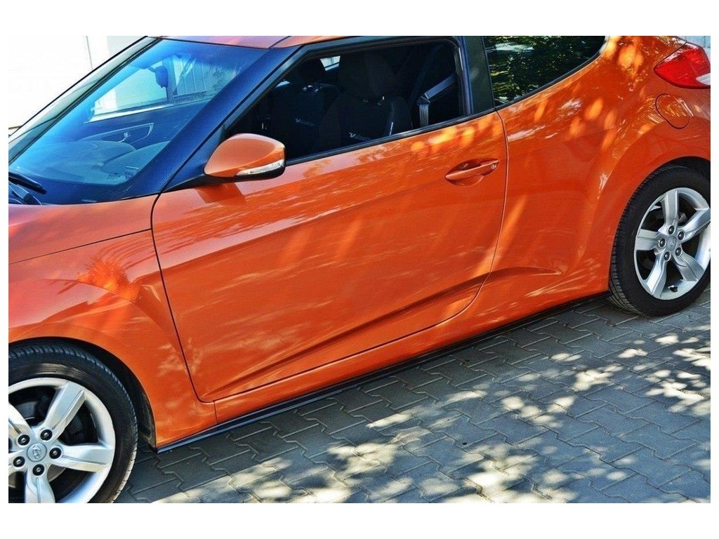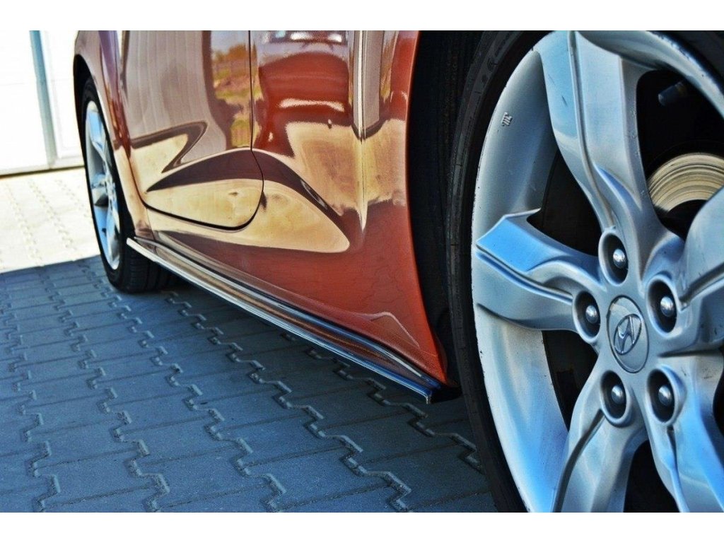 Maxton Design difuzory pod boční prahy pro vozidlo Hyundai Veloster . Povrchová úprava spoileru černý lesklý plast ABS.