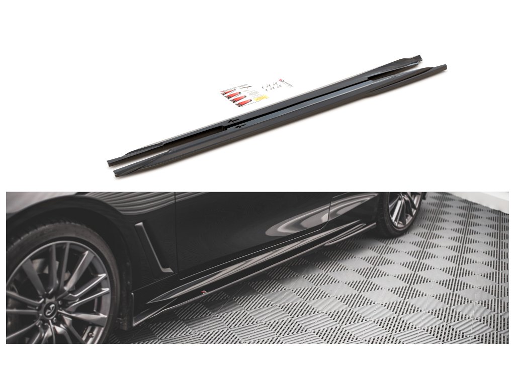 Maxton Design difuzory pod boční prahy pro vozidlo Infiniti Q60 Mk2 . Povrchová úprava spoileru carbon-Look.