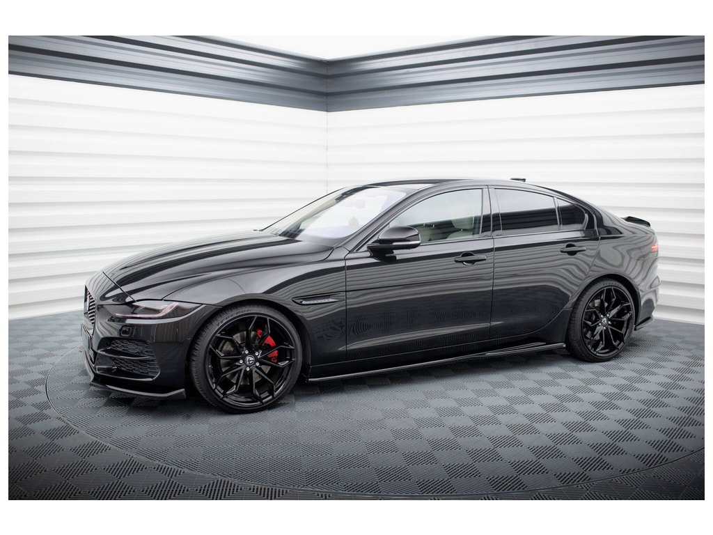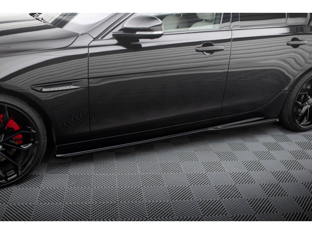 Maxton Design difuzory pod boční prahy pro vozidlo Jaguar XE Mk1 Facelift . Povrchová úprava spoileru černý lesklý plast ABS.
