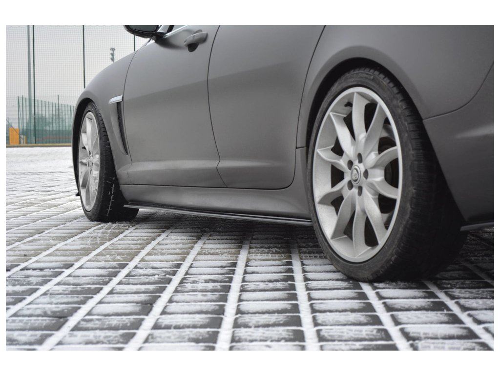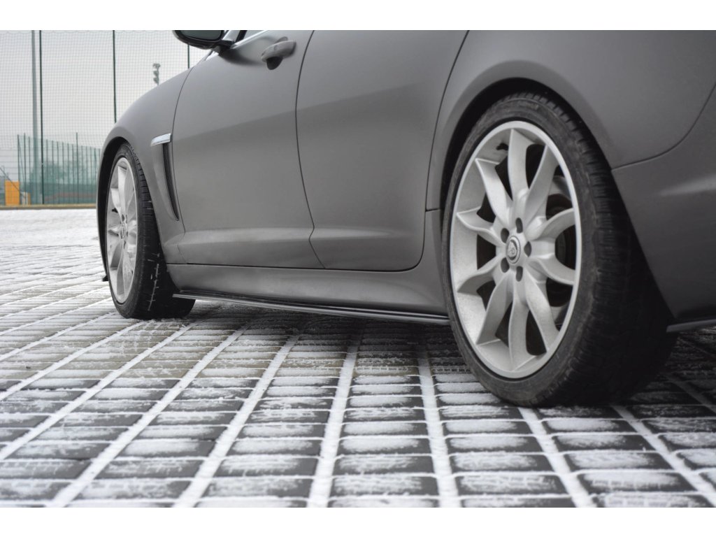 Maxton Design difuzory pod boční prahy pro vozidlo Jaguar XF Mk1 . Povrchová úprava spoileru černý lesklý plast ABS.