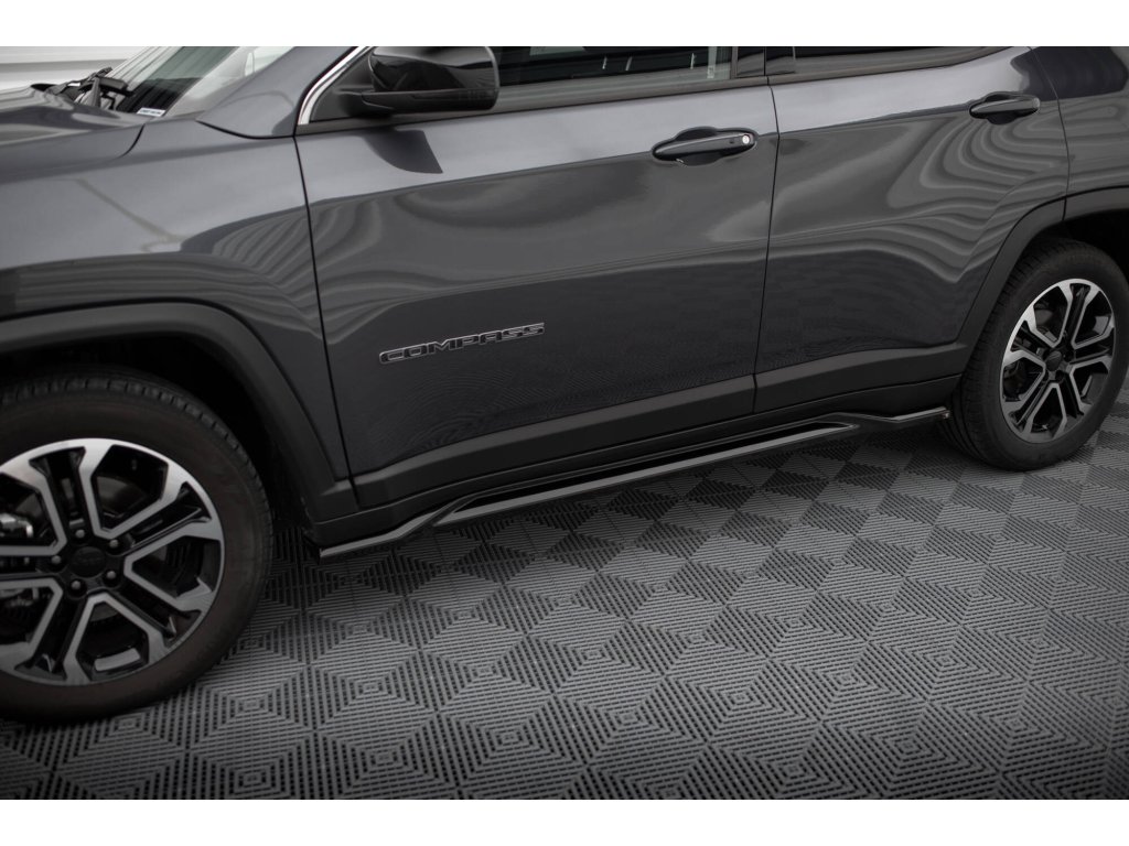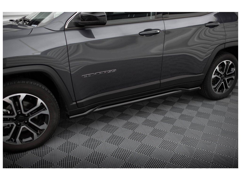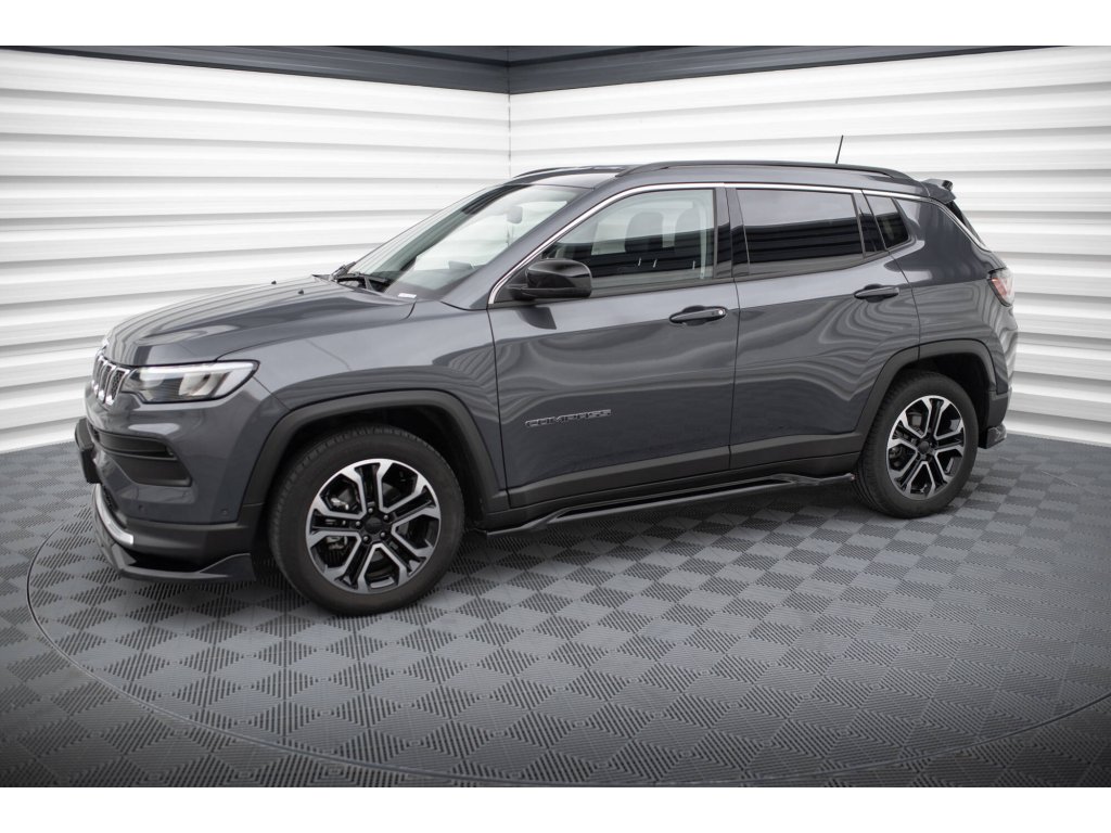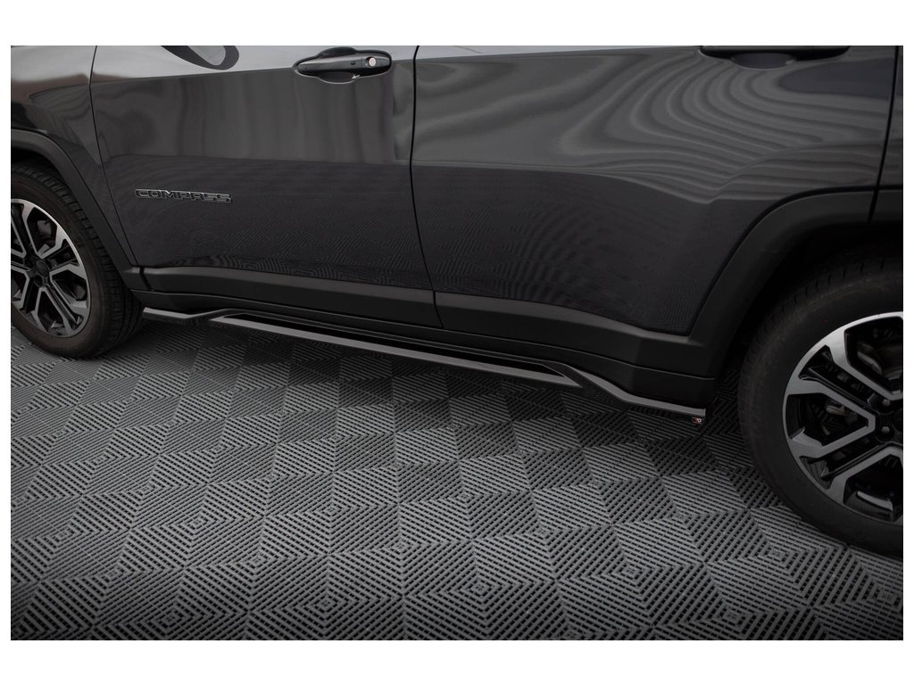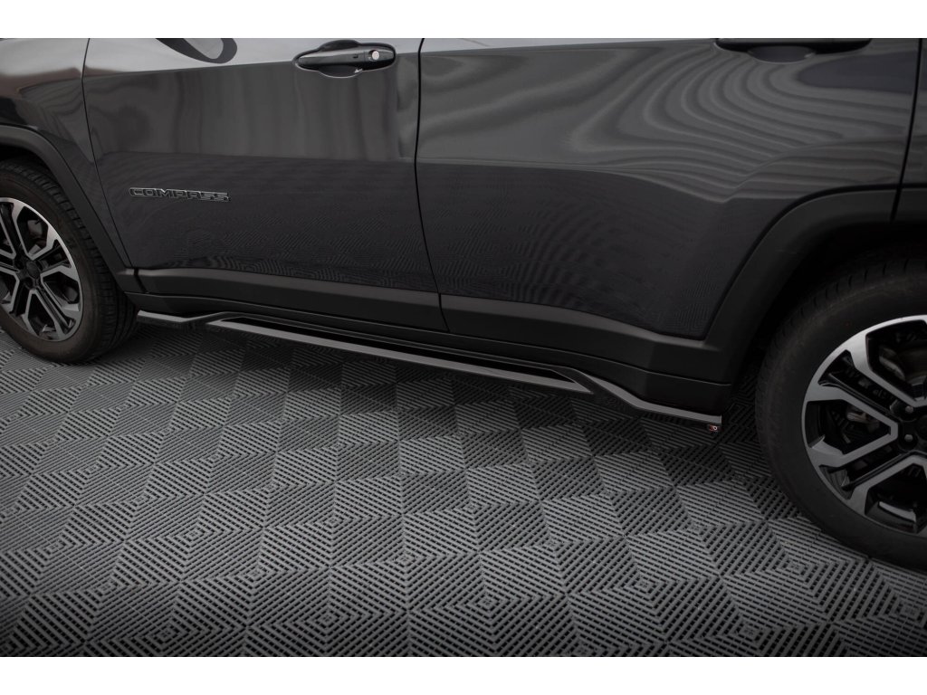 Maxton Design difuzory pod boční prahy pro vozidlo Jeep Compass Mk2 Facelift Limited . Povrchová úprava spoileru černý lesklý plast ABS.